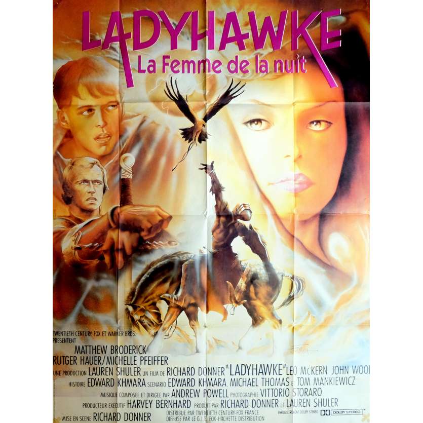 LADYHAWKE Movie Poster. Directed by Richard Donner with Michelle Pfeiffer. 1985. - Size: 47x63 in. approx. Condition: Good to very good (C5) several white tapes on back