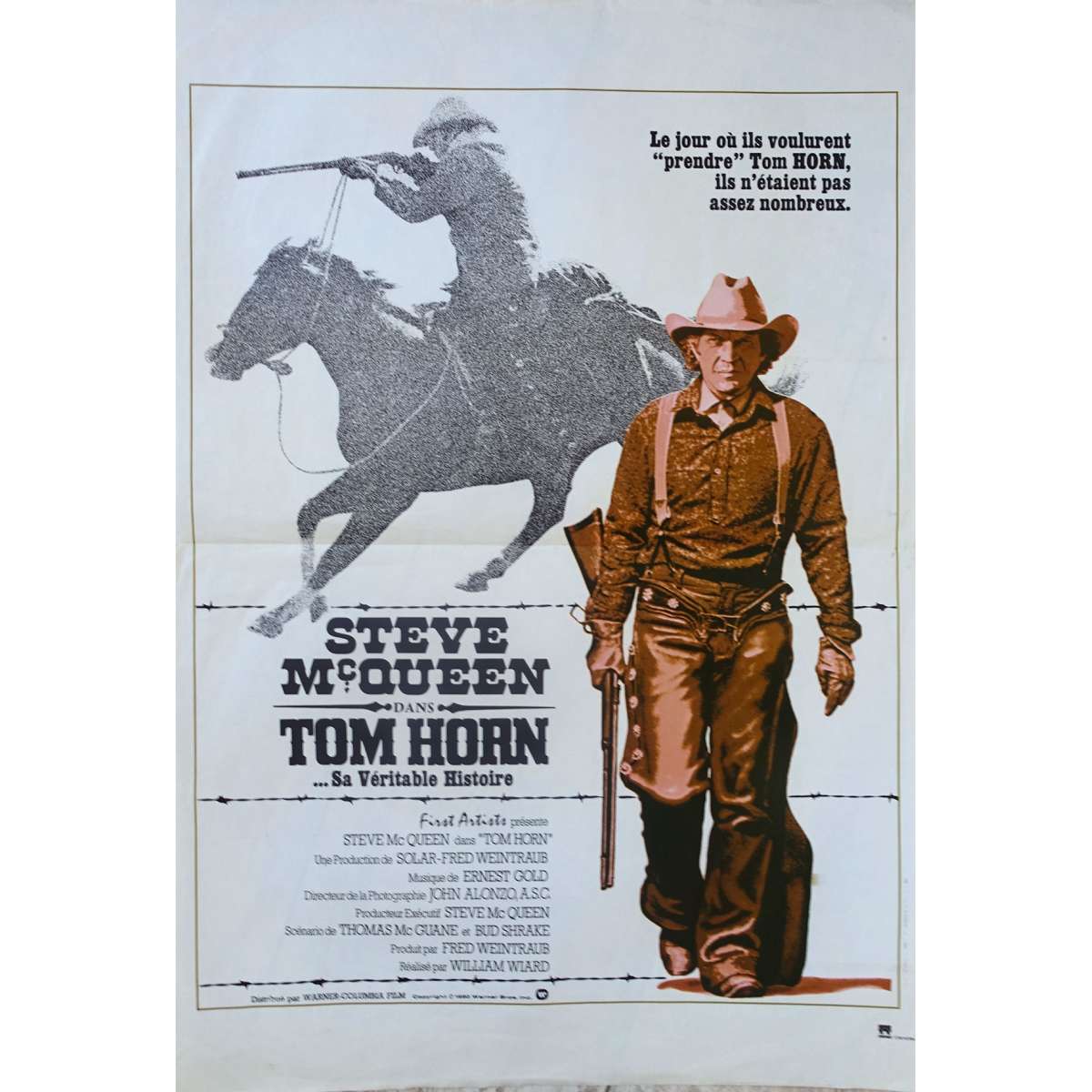 TOM HORN Original French Movie Poster - Directed by William Wiard with Steve McQueen. 1980 - Size: 15x21 in. approx. Condition: Very good to excellent (C7) Wear on borders