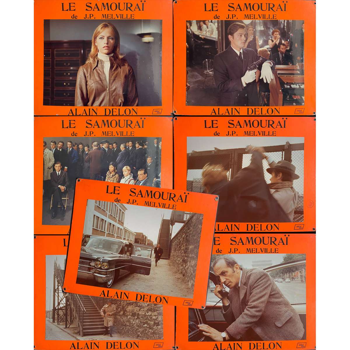 LE SAMOURAI Rare Original Swiss Lobby Cards x7 (complete set) - Jean-Pierre Melville, Alain Delon - 1967 - Size: 14x18 in. approx. Condition: Very good to Excellent (C7) cardboarded