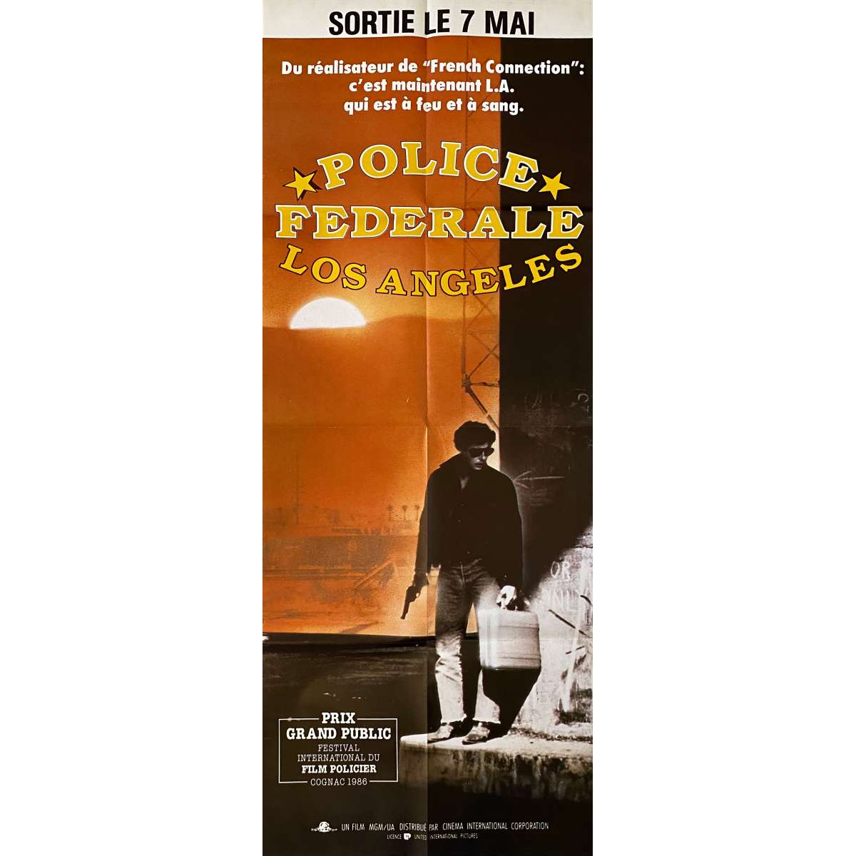 TO LIVE AND DIE IN LA French Movie Poster (1984) - William Friedkin, Willem Dafoe - Size: 23x63 in. approx. Condition: Very good (C6) Creases, extra folds at top and bottom borders