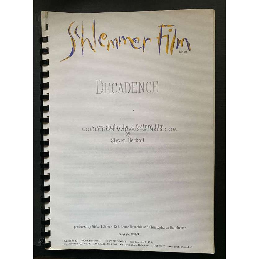 DECADENCE Production-used Movie Script en anglais, 75p (1994) - Steven Berkoff, Joan Collins - Size: 9x12 in. approx. Condition: Very good to Excellent (C7)