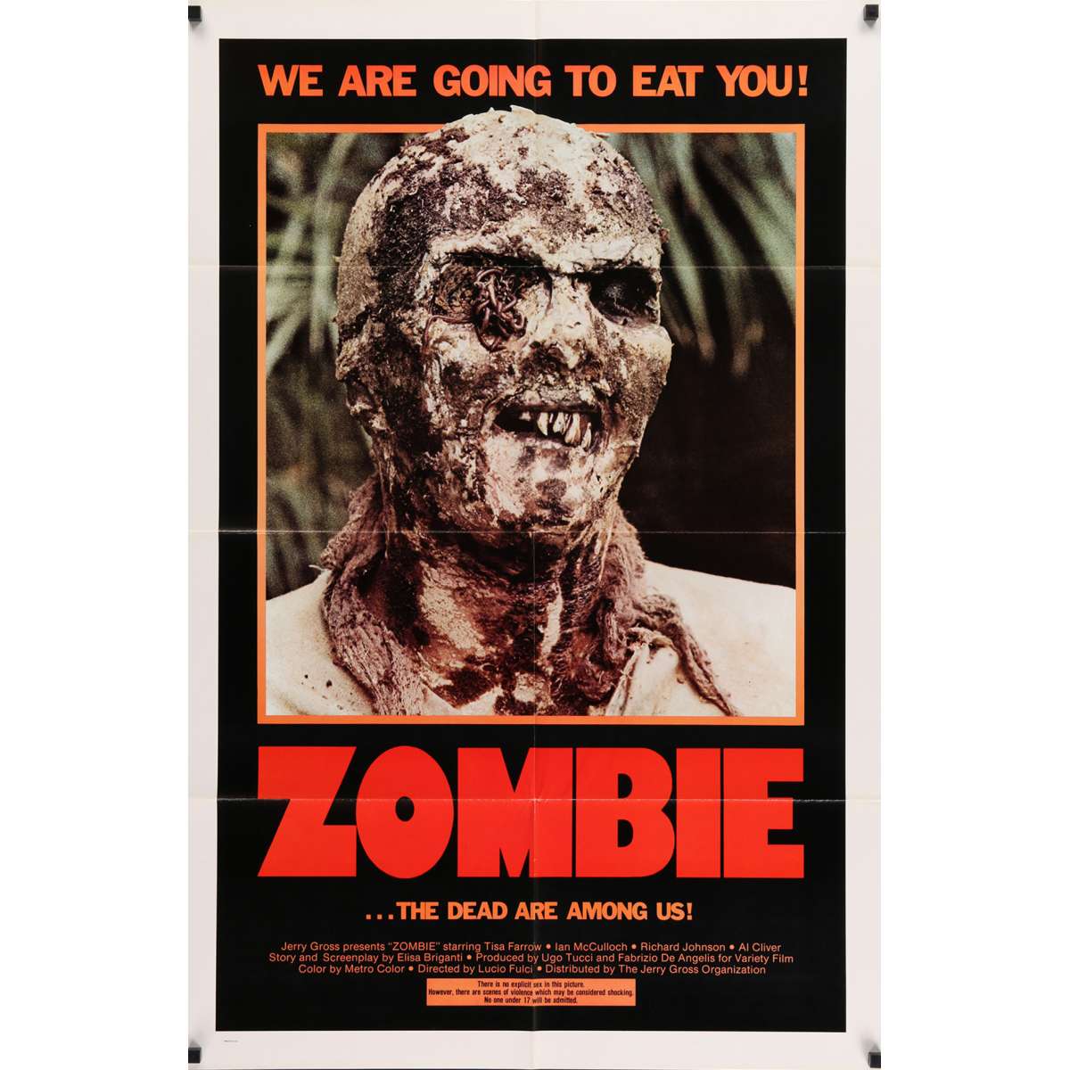Lucio Fulci's ZOMBIE Original Vintage Theater-Used Folded One-Sheet Movie Poster - 1980 - (1sh; measures 27" x 41" [69 x 104 cm]) Condition : Excellent (C8)