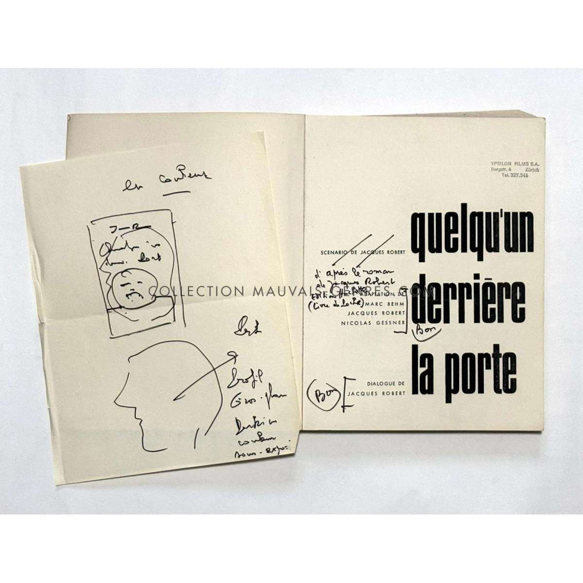 Very rare! SOMEONE BEHIND THE DOOR Original Movie Script (in French) and production documents - (1971 - France - Nicolas Gessner, Charles Bronson) - Size: 9x12 in. Approx. Condition: Very good (C6) Rare copy that belonged to the production manager of the film O. Darrigol (The Widow Coudert, Farewell my Friend...). This lot includes the 120p script used during the filming of the movie, an original shooting schedule, and various documents on the design of the opening credits.