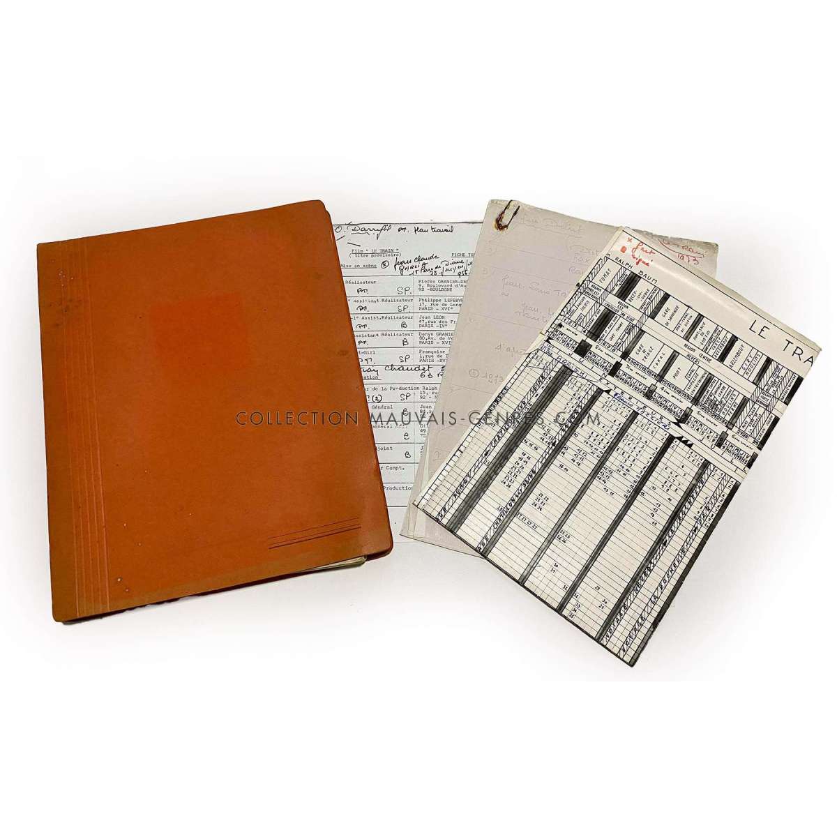 THE TRAIN Movie Script - 160p (1973 - France - Pierre Granier-Deferre, Jean-Louis Trintignant) - Size: 9x12 in. Approx. - French language - Condition: Very good (C6). The script belonged to the production manager of the film O. Darrigol (The Widow Coudert, Farewell my Friend...).