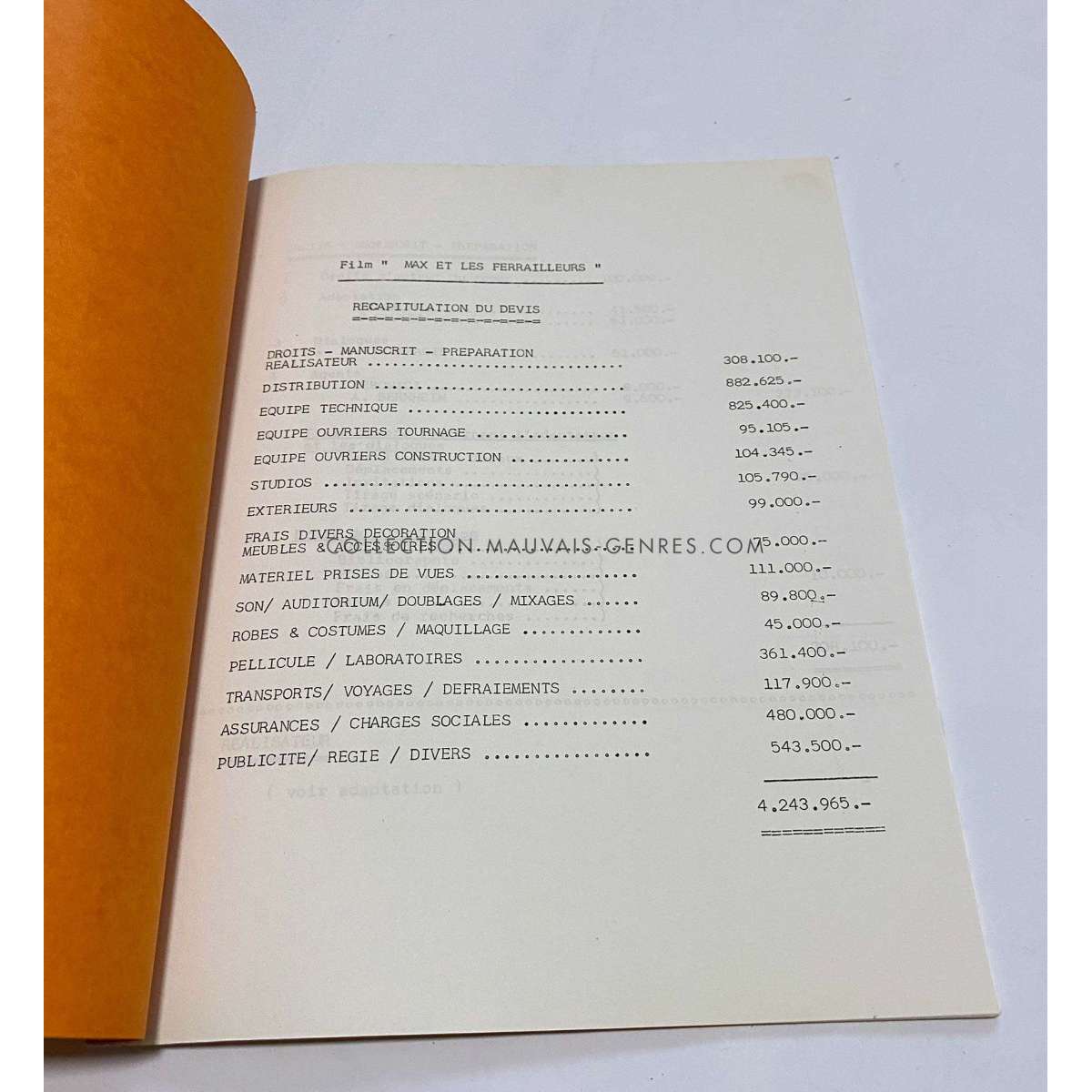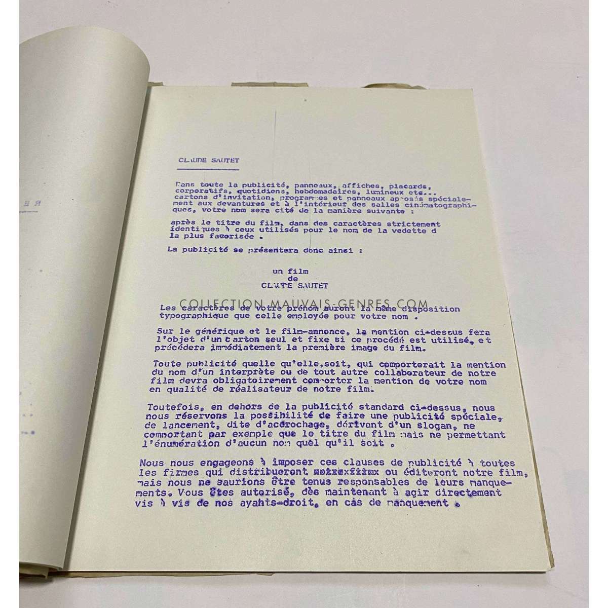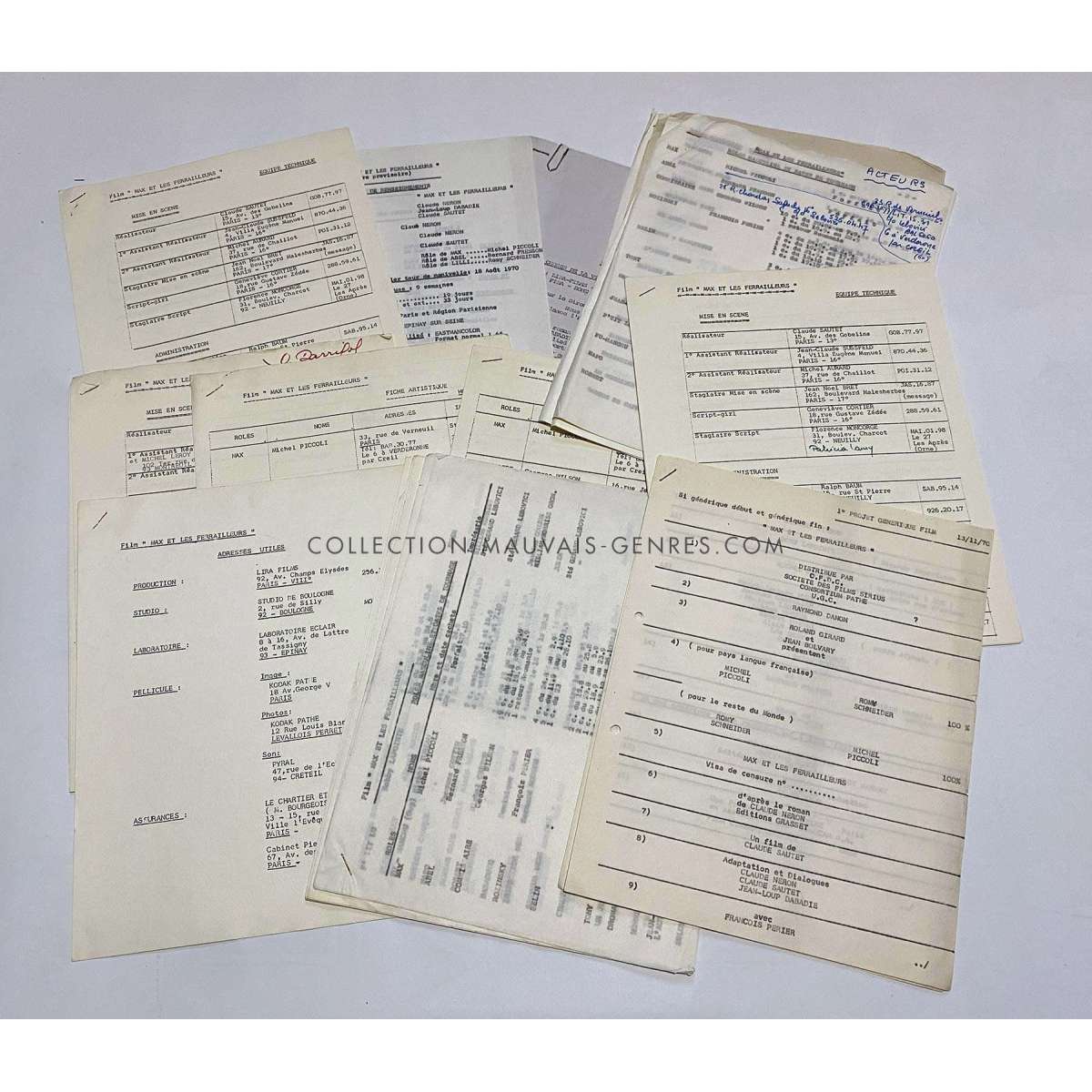 MAX AND THE JUNKMEN Production Documents - (1971 - France - Claude Sautet, Michel Piccoli) - Size: 9x12 in. Approx. - French language - Condition: Very good (C6) These documents belonged to the production manager of the film O. Darrigol (The Widow Coudert, Farewell my Friend...).