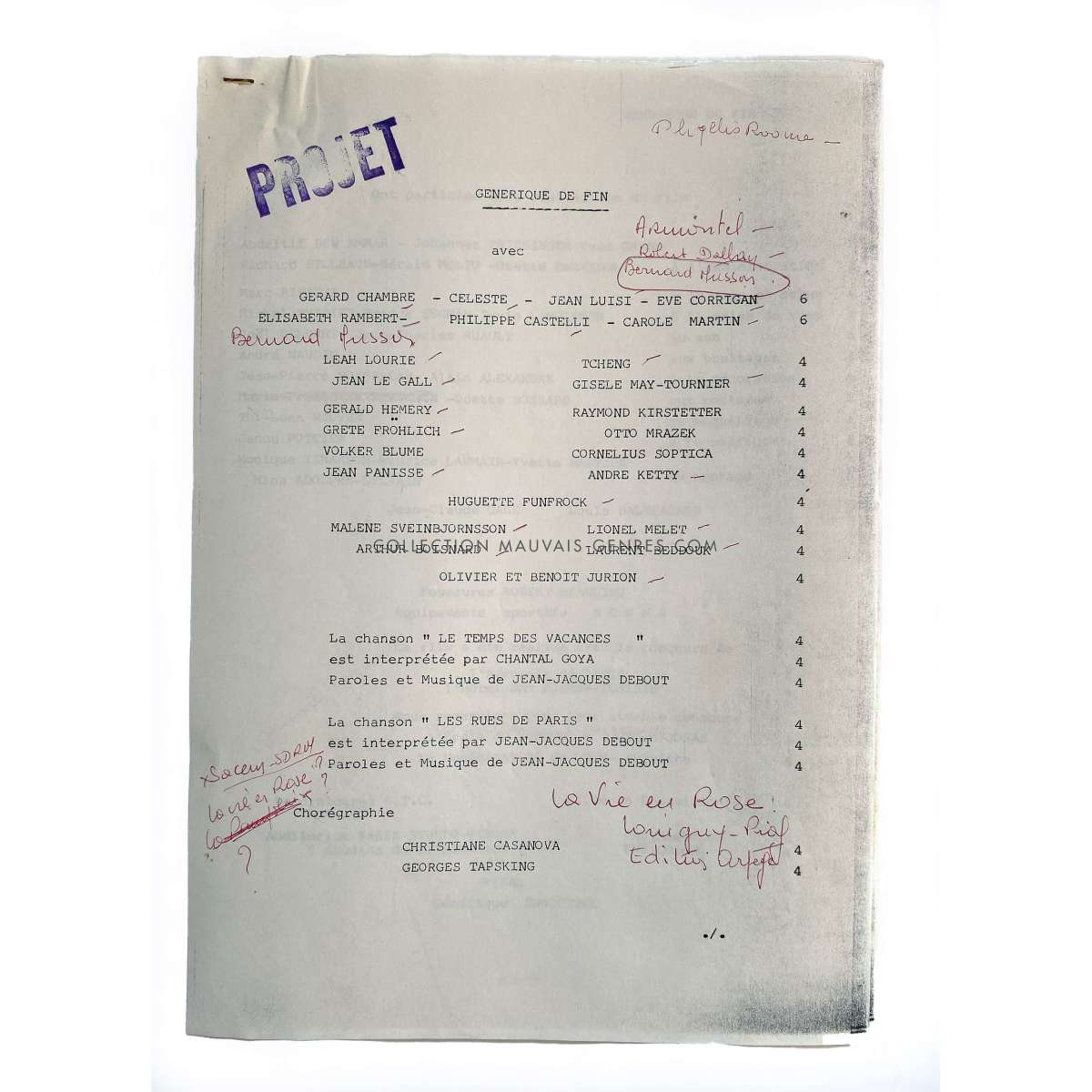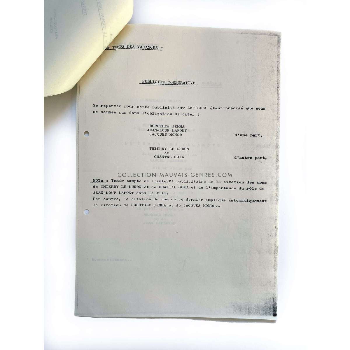 LE TEMPS DES VACANCES Production Documents - (1979 - France - Claude Vital, Nathalie Delon) - Size: 9x12 in. Approx. Condition: Very good (C6) These documents belonged to the production manager of the film O. Darrigol (The Widow Coudert, Farewell my Friend...).