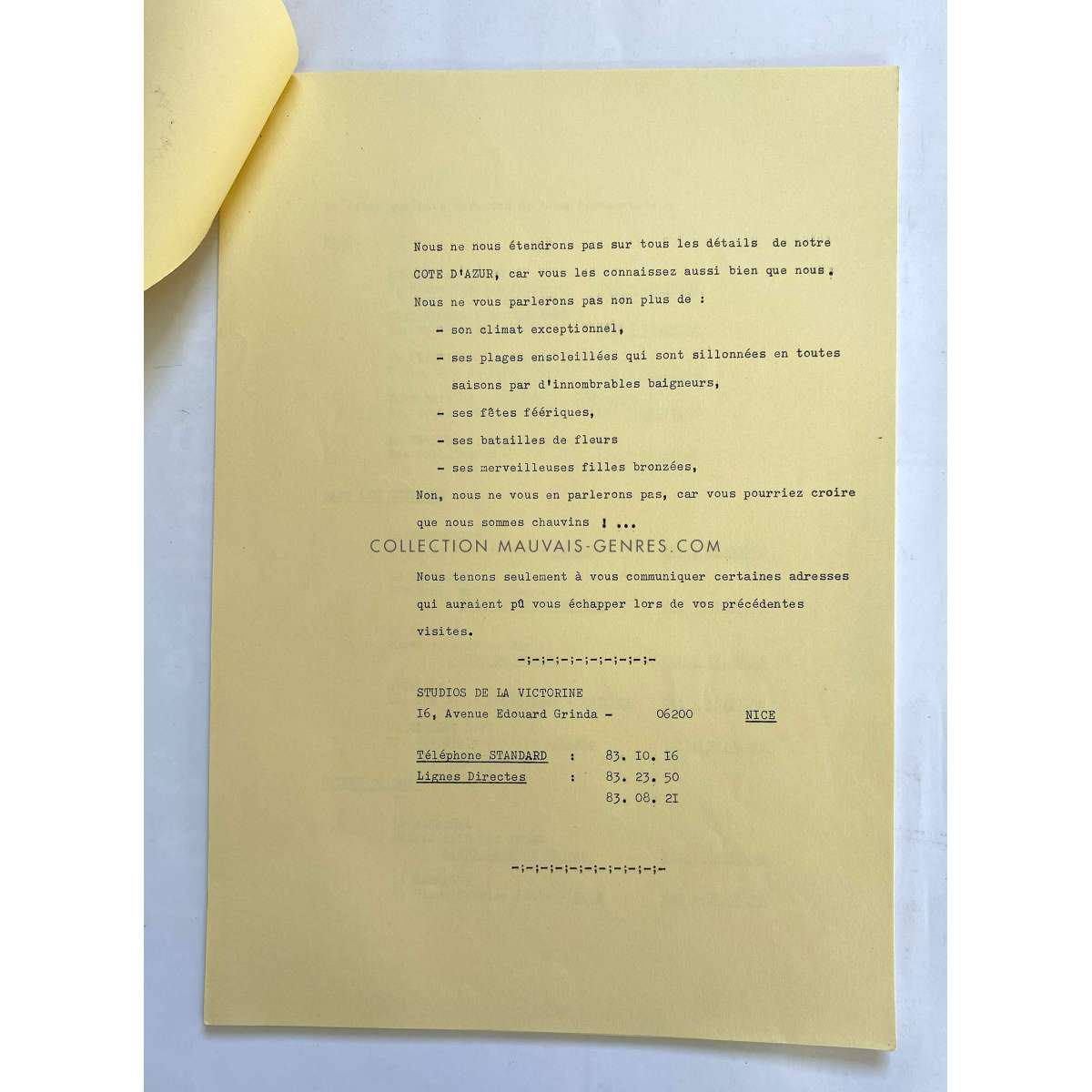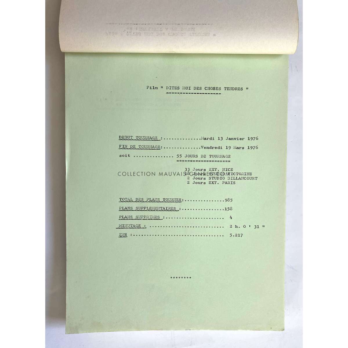 WE'VE SEEN EVERYTHING Production Documents - (DITES MOI DES CHOSES TENDRES - 1976 - France - Georges Lautner, Pierre Richard) - Size: 9x12 in. Approx. Condition: Very good (C6) These documents belonged to the production manager of the film O. Darrigol (The Widow Coudert, Farewell my Friend...).