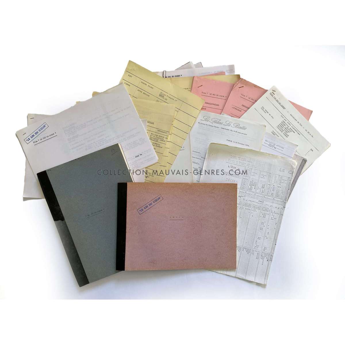 LE CRI DU COEUR Movie Script - 121p (1974 - France - Claude Lallemand, Stéphane Audran) - Size: 9x12 in. Approx. Condition: Very good (C6) This Movie script belonged to the production manager of the film O. Darrigol (The Widow Coudert, Farewell my Friend...). The package includes the script used for filming other files.