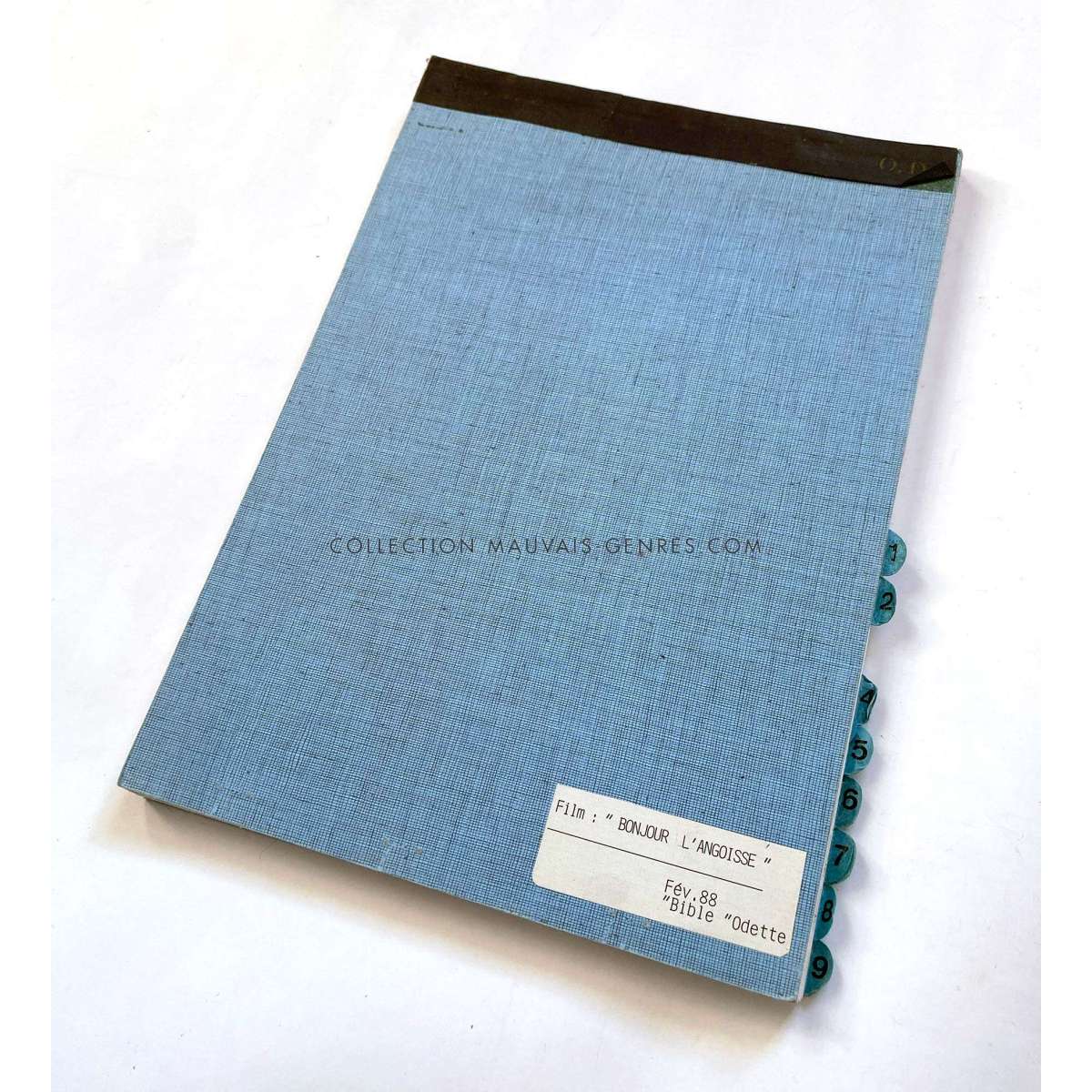 BONJOUR L'ANGOISSE Production Bible - (1988 - France - Pierre Tchernia, Michel Serrault) - Size: 9x12 in. Approx. Condition: Very good (C6) This Production Bible belonged to the production manager of the film O. Darrigol (The Widow Coudert, Farewell my Friend...). The package includes the production bible and some documents used for filming. French Language.