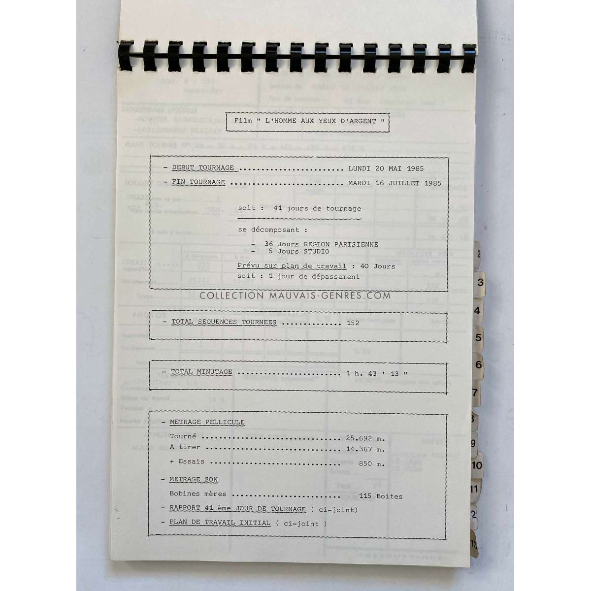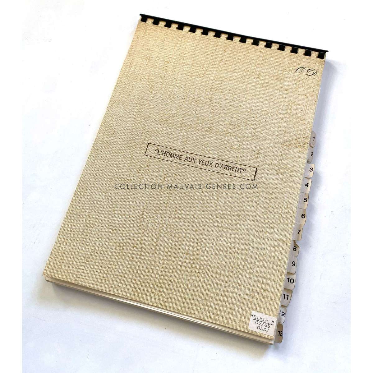 L'HOMME AUX YEUX D'ARGENT Production-used Bibles - (1985 - France - Pierre Granier-Deferre, Alain Souchon) - Size: 9x12 in. Approx. Condition: Very good (C6) This Production Bible belonged to the production manager of the film O. Darrigol (The Widow Coudert, Farewell my Friend...). The package includes the production bible and some documents used for filming. French Language.