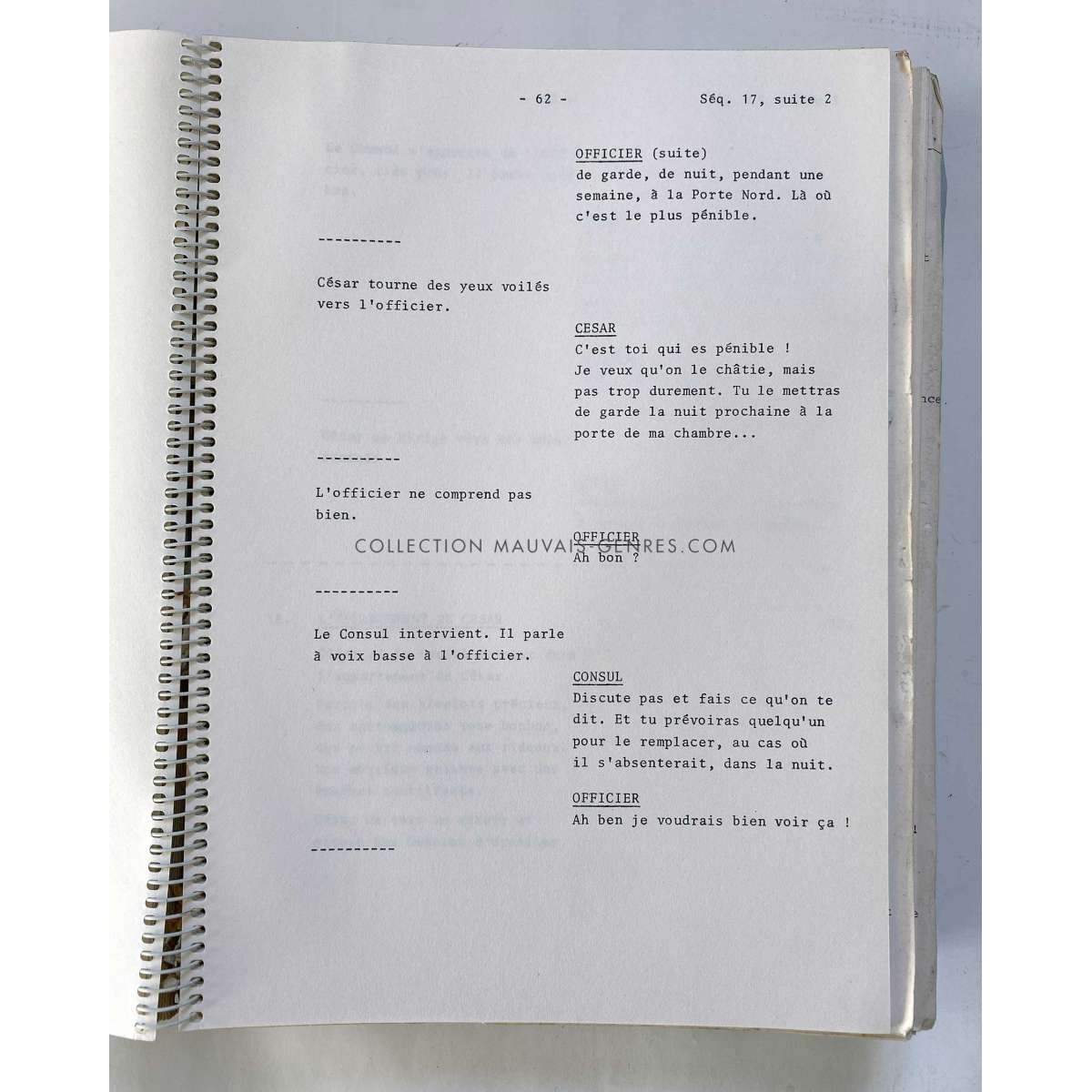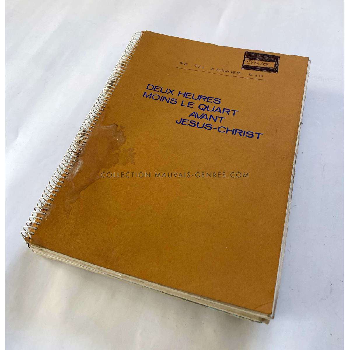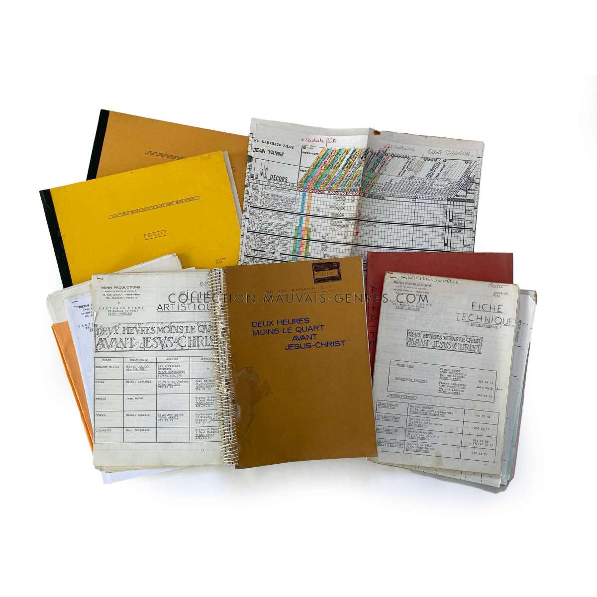 QUARTER TO TWO BEFORE JESUS CHRIST Production-Used Movie Script and documents - (1982 - France - Jean Yanne, Coluche) - Size: 9x12 in. Approx. Condition: Very good (C6) This Movie script belonged to the production manager of the film O. Darrigol (The Widow Coudert, Farewell my Friend...). The package includes the script, the shooting schedule and other documents used for filming. French Language.