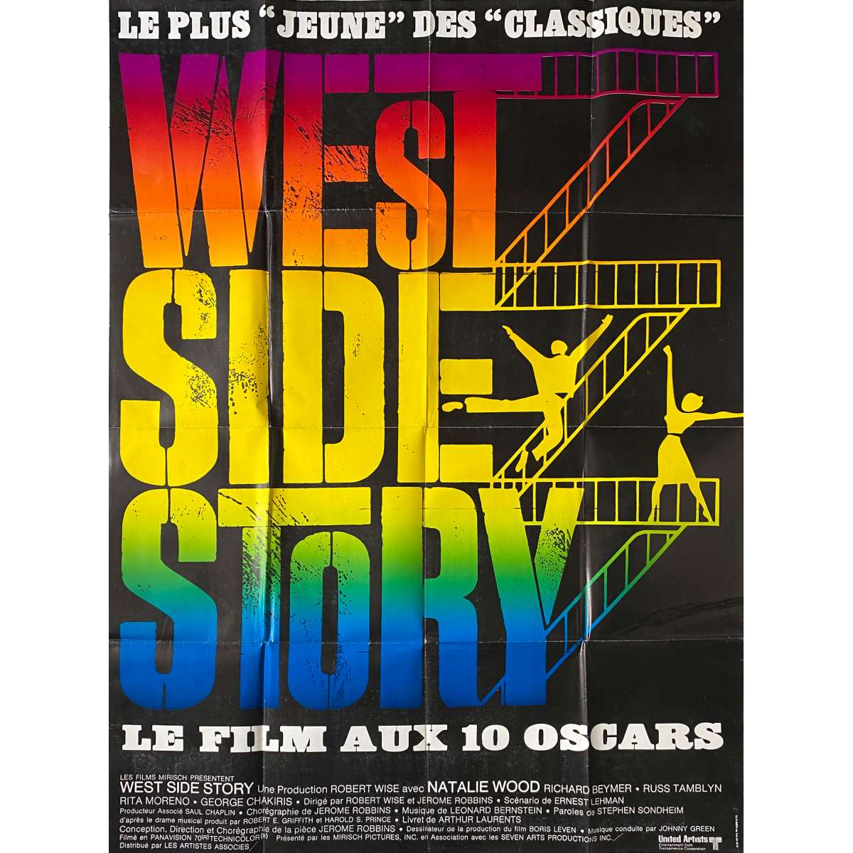 WEST SIDE STORY French Movie Poster (1961/R1970) - Robert Wise, Natalie Wood - Size: 47x63 in. approx. Condition: Very good (C6) Light discoloration (see pic), tears on borders, Stains