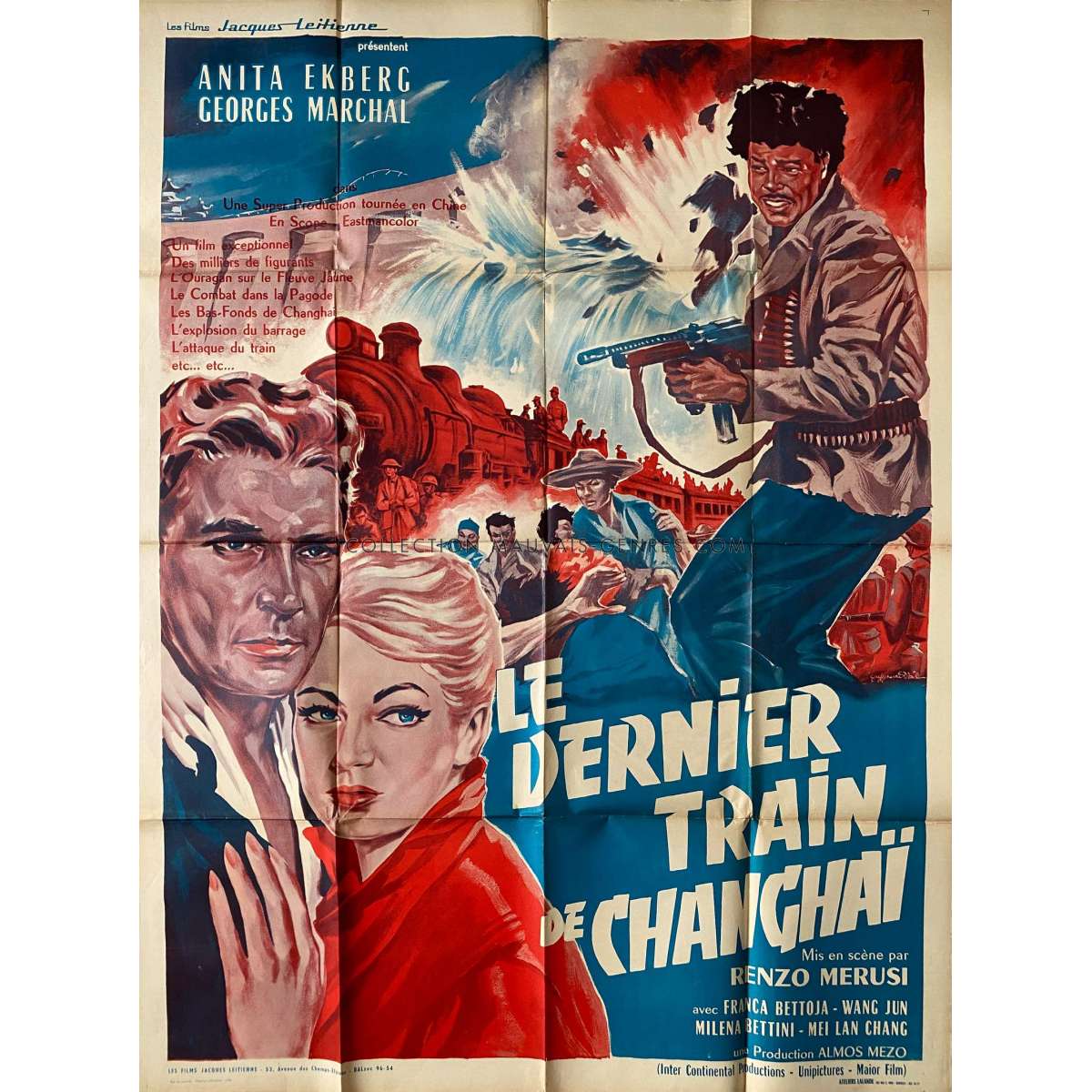 ONE MORE TRAIN TO ROB Original French Movie Poster (1960) - Size: 47x63 in. - Renzo Merusi, Anita Ekberg - Condition: Very good (C6) Tears on folds, Reinforcement tapes on the back