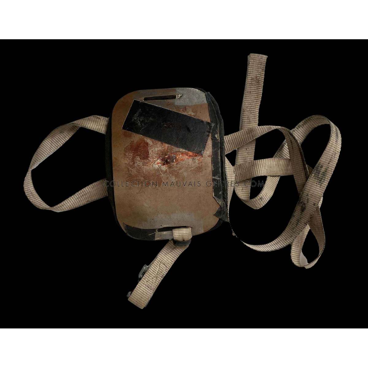 THE NEST Original Screen-Used Hero Outfit and Props, worn by Benoit Magimel in the Cult French Action Movie! Includes 1 pair of Shoes, 1 F/X Plaque and 1 Bulletproof vest with false blood. Condition : Good to very good (C5). The soles of the shoes are coming unglued, but the shoes are still displayable (see photos). This is the first time we've seen props from THE NEST resurface on the market! These items have been recovered and stored for over 20 years by the film's arms and military equipment supplier. They are in used condition and may have some imperfections (more photos available upon request). The equipment will be delivered with a letter of provenance.