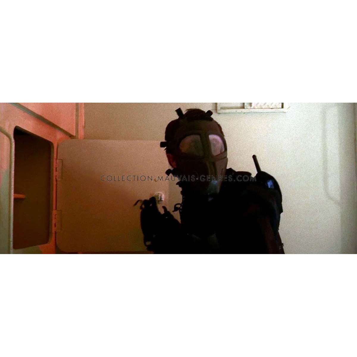 Note : Ce masque à Gaz est un véritable masque à Gaz de l'armée américaine, c'est une pièce de collection militaire vintage datant de la guerre du Vietnam. Il a été modifié pour les besoins du film et n'est bien évidemment non fonctionnel. Il a été utilisé par les forces spéciales dans le film et est visible au début de l'assaut au gaz de l'entrepôt. Comme toutes les pièces que nous proposons sur ce film, il a été récupéré et stocké depuis plus de 20 ans par le fournisseur d'armes et d'équipement militaire du film. le masque srea livré avec une lettre de provenance.