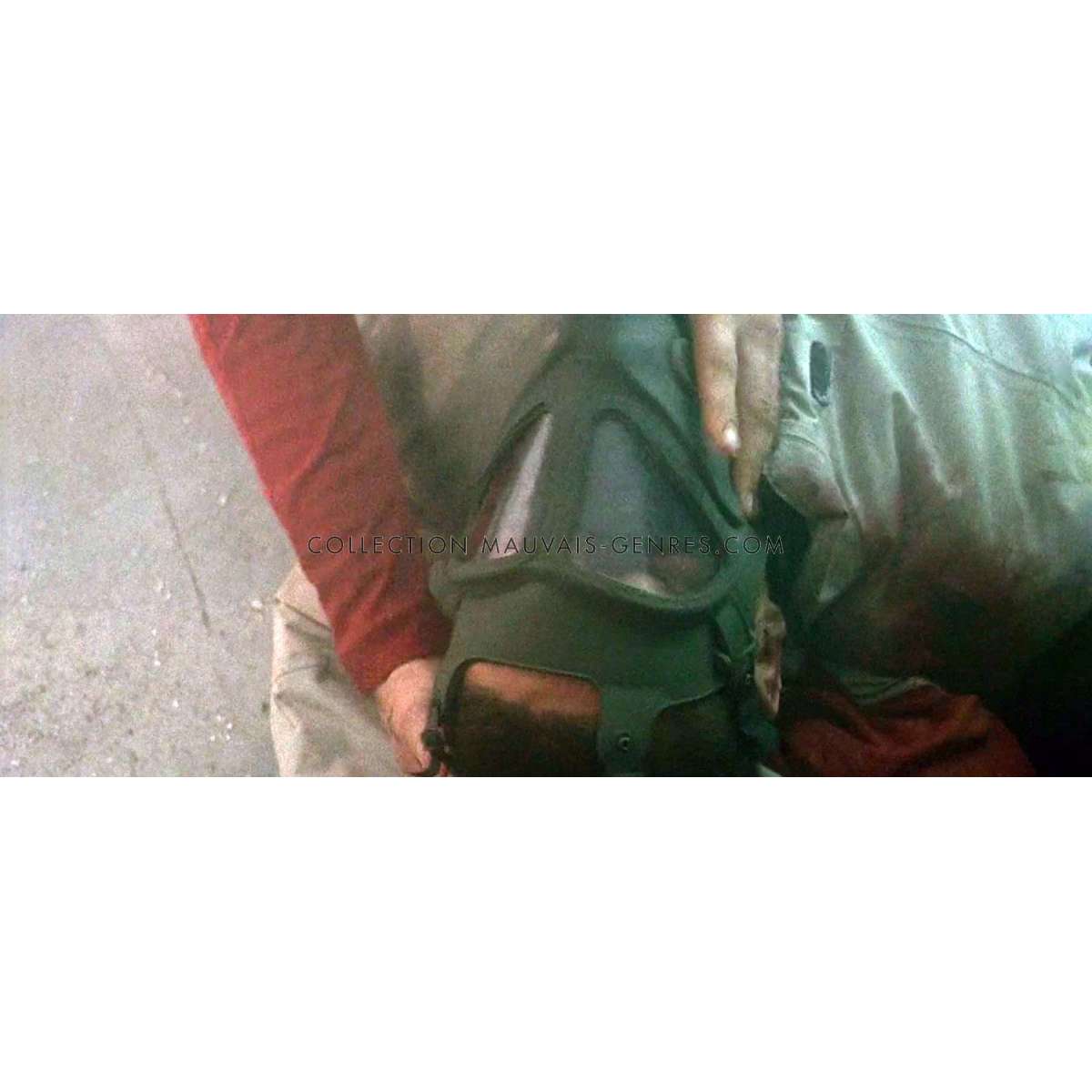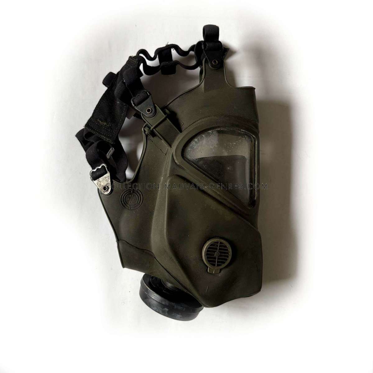 Note : Ce masque à Gaz est un véritable masque à Gaz de l'armée américaine, c'est une pièce de collection militaire vintage datant de la guerre du Vietnam. Il a été modifié pour les besoins du film et n'est bien évidemment non fonctionnel. Il a été utilisé par les forces spéciales dans le film et est visible au début de l'assaut au gaz de l'entrepôt. Comme toutes les pièces que nous proposons sur ce film, il a été récupéré et stocké depuis plus de 20 ans par le fournisseur d'armes et d'équipement militaire du film. le masque sera livré avec une lettre de provenance.