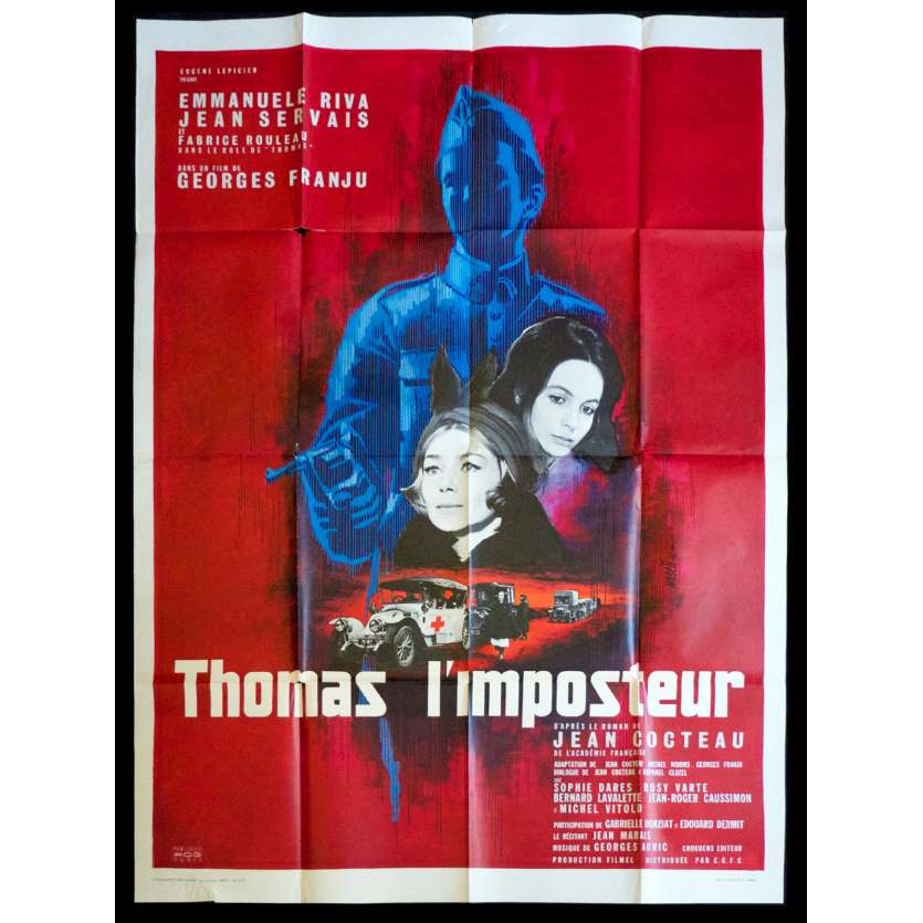 Affiche de Cinéma Française Originale de THOMAS L'IMPOSTEUR de Georges Franju avec Emmanuelle Riva. 1965 - Format: 120x160 cm env. - Etat correct (C5), grandes déchirures sur pli