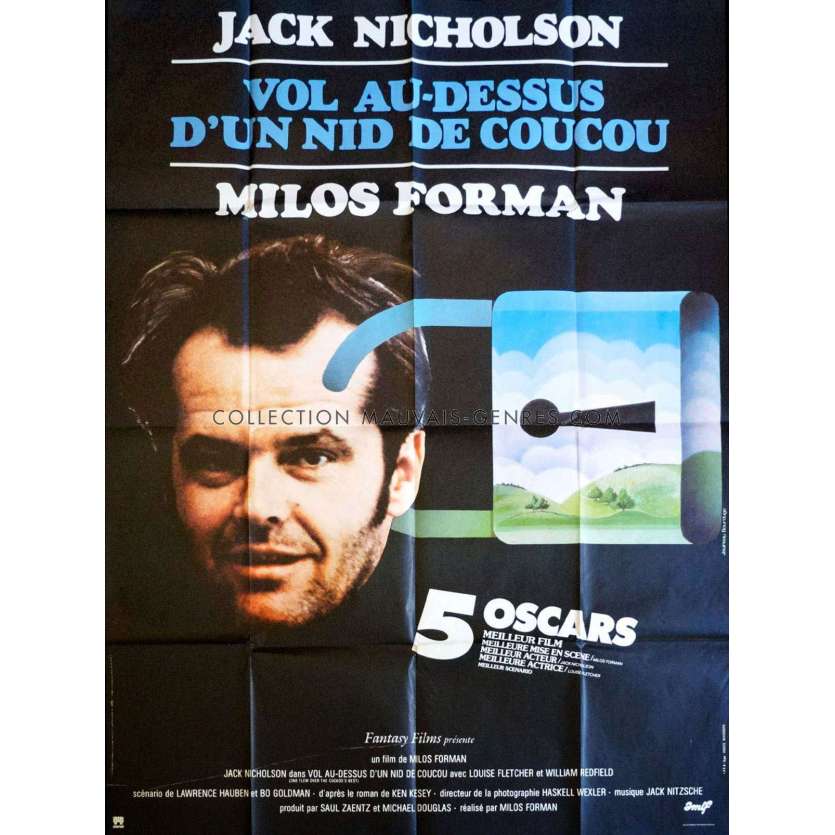 Affiche de Cinéma Française Originale de VOL AU DESSUS D'UN NID DE COUCOU de Milos Forman avec Jack Nicholson. 1975 - Format: 120x160 cm env. - Très bon à Excellent état (C7), punaises