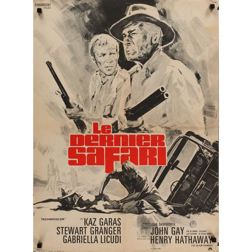 Affiche de cinéma Française de LE DERNIER SAFARI de Henry Hathaway avec Stewart Granger. 1967 - Format: 60x80 cm env. Très bon état (C6), déchirures aux coins. Pliée