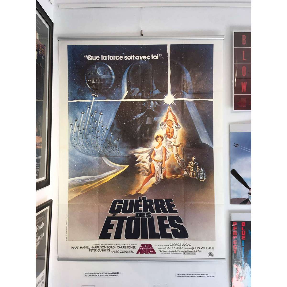 Rare Affiche de cinéma Française de STAR WARS - LA GUERRE DES ETOILES (STAR WARS - A NEW HOPE) de George Lucas avec Harrison Ford. 1977 - Format: 120x160 cm. environ. - Comme neuve (C9) Ultra-rare dans cet état ! Pas de punaises, scotchs ou déchirures, jamais affichée !