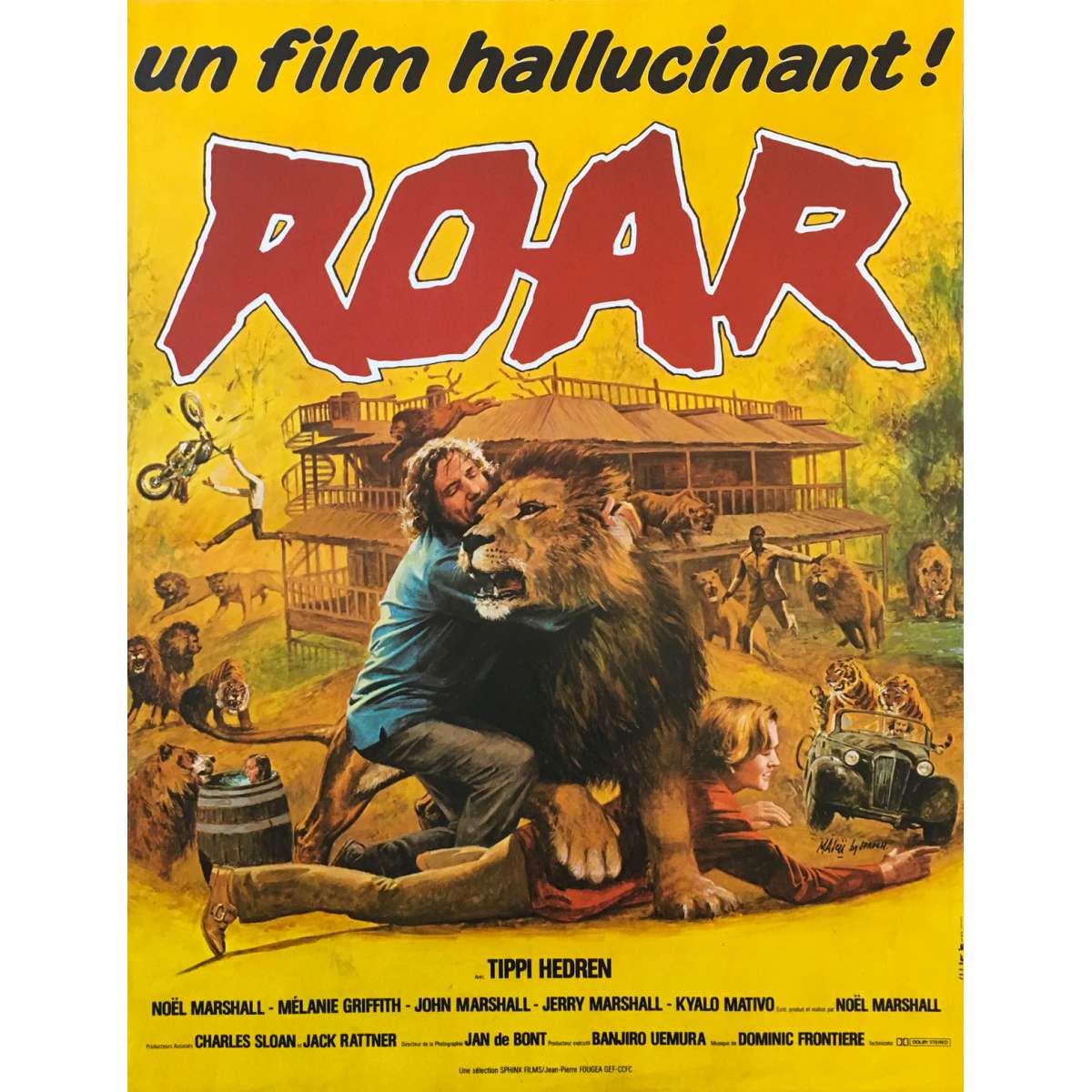 Affiche de cinéma Française de ROAR (ROAR) de Noel Marshall avec Tippi Hedren. 1981 - Format: 40x54 cm. environ. - Très bon à Excellent état (C7)