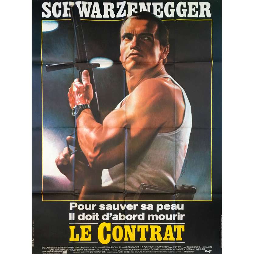 Affiche de cinéma Française de LE CONTRAT (RAW DEAL) de John Irvin avec Arnold Schwarzenegger. 1986 - Format: 120x160 cm. environ. - Très Bon à Excellent état (C7)
