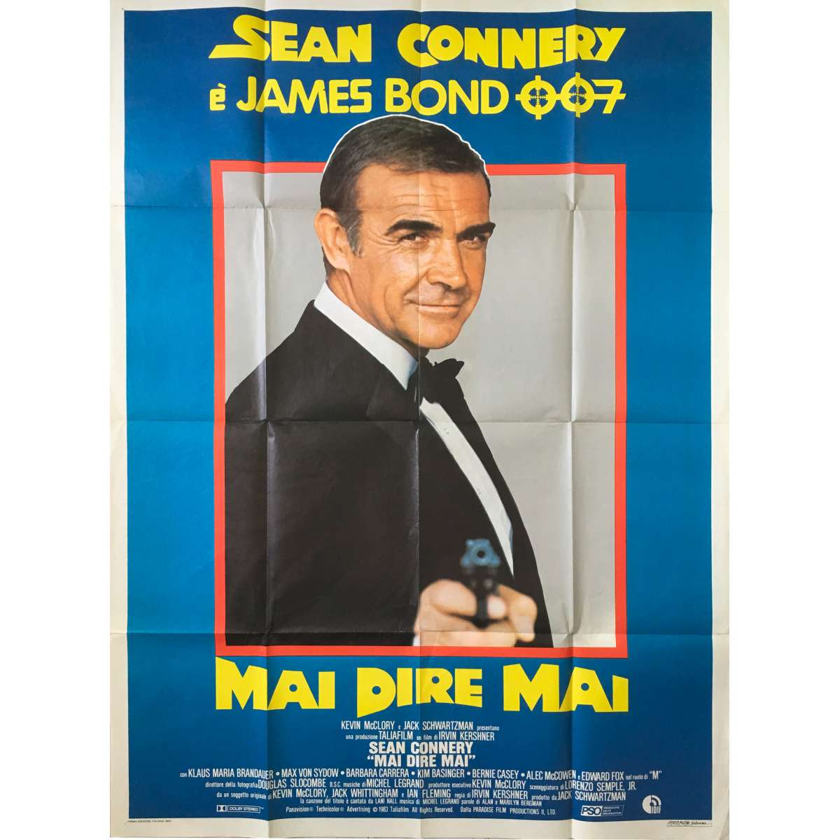 Affiche de cinéma Italienne de JAMAIS PLUS JAMAIS (NEVER SAY NEVER AGAIN) de James Bond avec Sean Connery. 1983 - Format: 100x140 cm. environ. - Etat correct (C5) Usure bord, petits trous, scotchs au dos, belle présentation