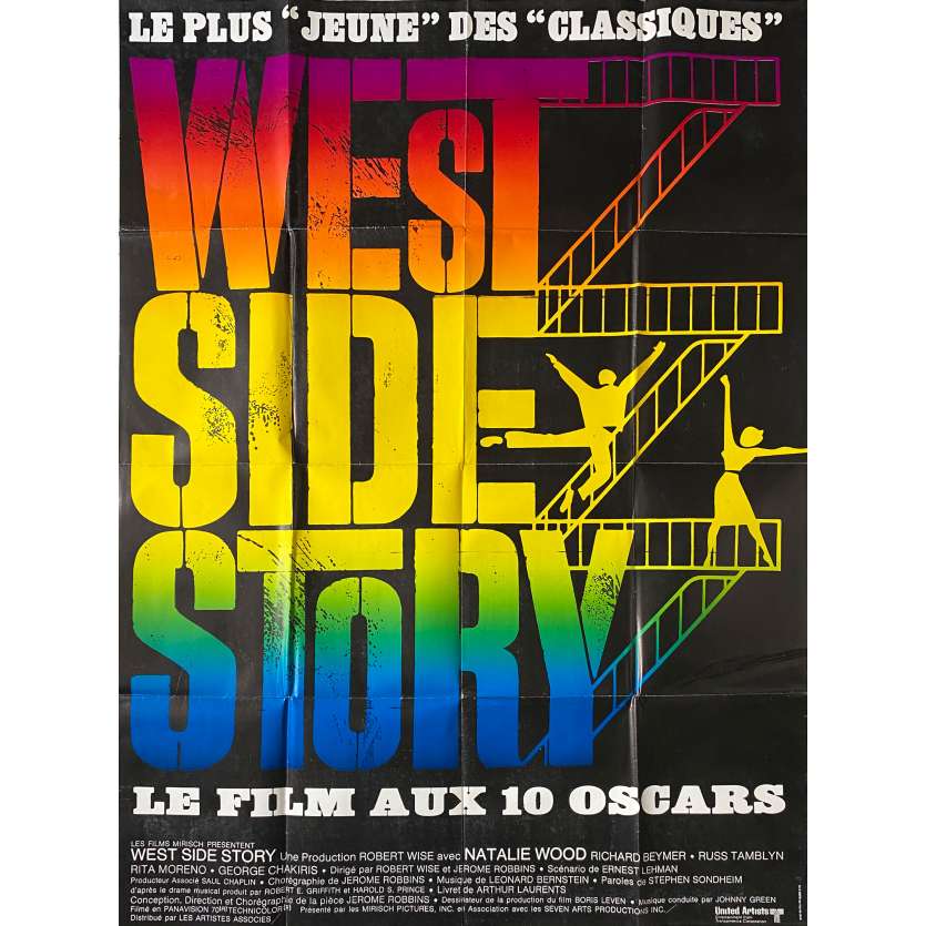 Affiche de film française de WEST SIDE STORY (WEST SIDE STORY - 1961/R1970) - Robert Wise, Natalie Wood - Format: 120x160 cm. environ. - Très bon état (C6) Légère décoloration (voir photo), déchirures sur bord, Tâches