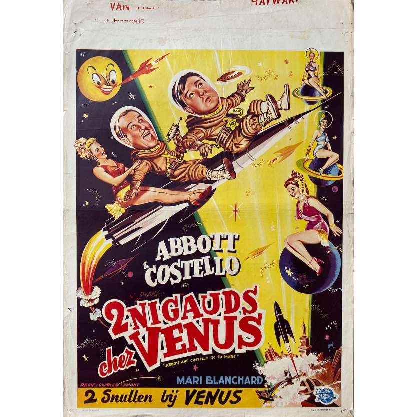 Affiche de film belge de DEUX NIGAUDS CHEZ VENUS (ABBOTT AND COSTELLO GO TO MARS - 1953) - Charles Lamont, Bud Abbott, Lou Costello - Format: 35x55 cm. environ. - Etat passable (C4) Recadrée, Déchirures, Usure bords, néanmoins toujours une belle affiche (voir photo)