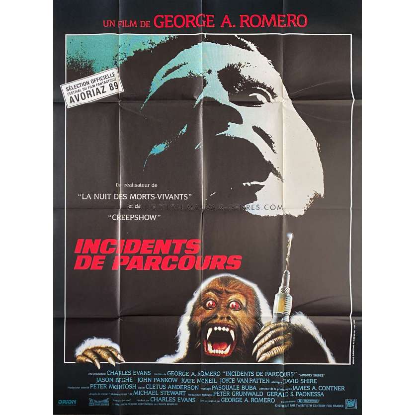 Affiche de cinéma française de INCIDENT DE PARCOURS (MONKEY SHINES - 1988) - George A. Romero, Jason Beghe - Format: 120x160 cm. environ. - Très bon à Excellent état (C7)