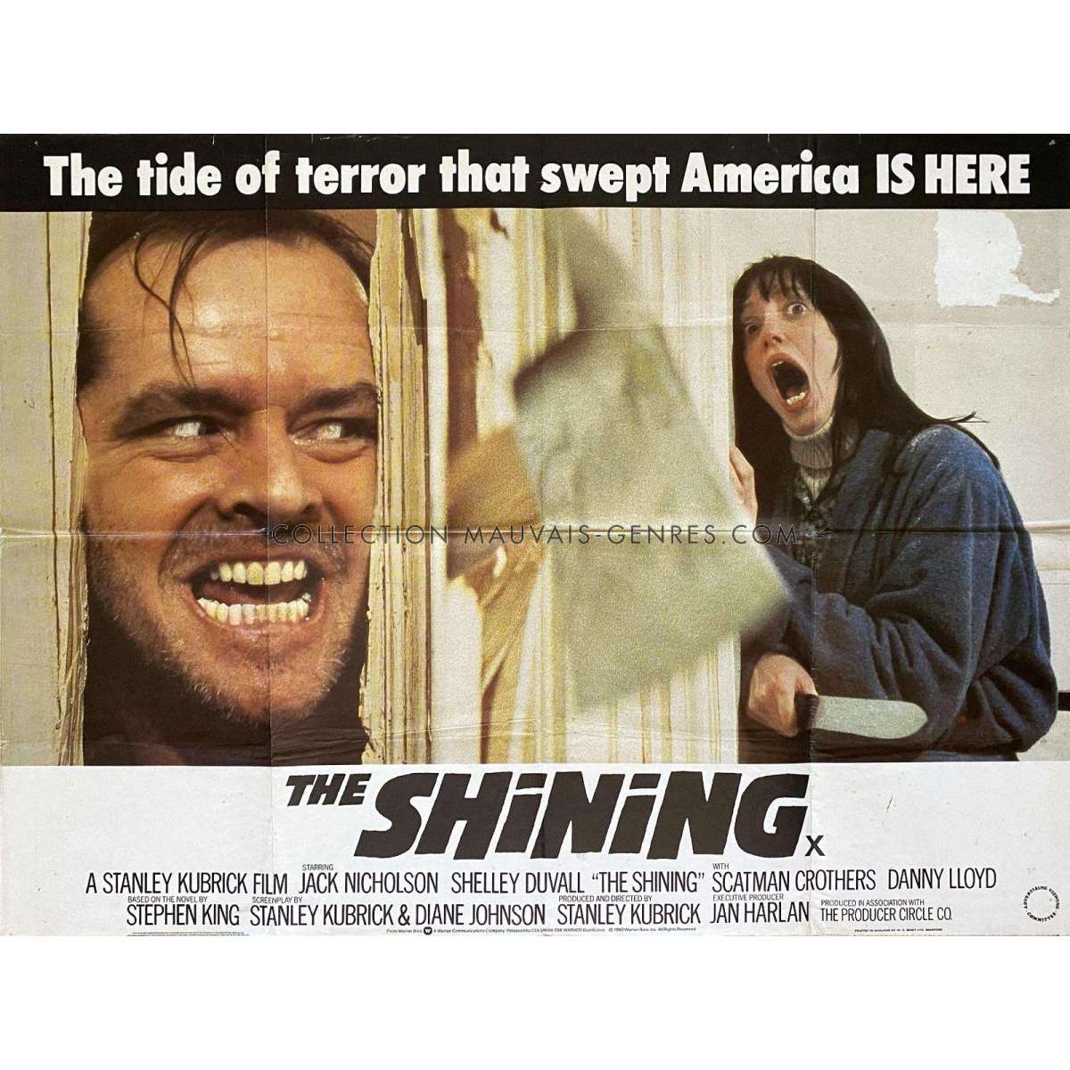 Affiche de film de SHINING (THE SHINING - 1980 - Royaume-Uni) - Format: 76x102 cm. environ. - Etat passable (C4) belle déchirure de surface en haut à droite (si vous le savez pas, vous ne la voyez pas !), Petites déchirures, l'affiche reste très belle (voir photo)