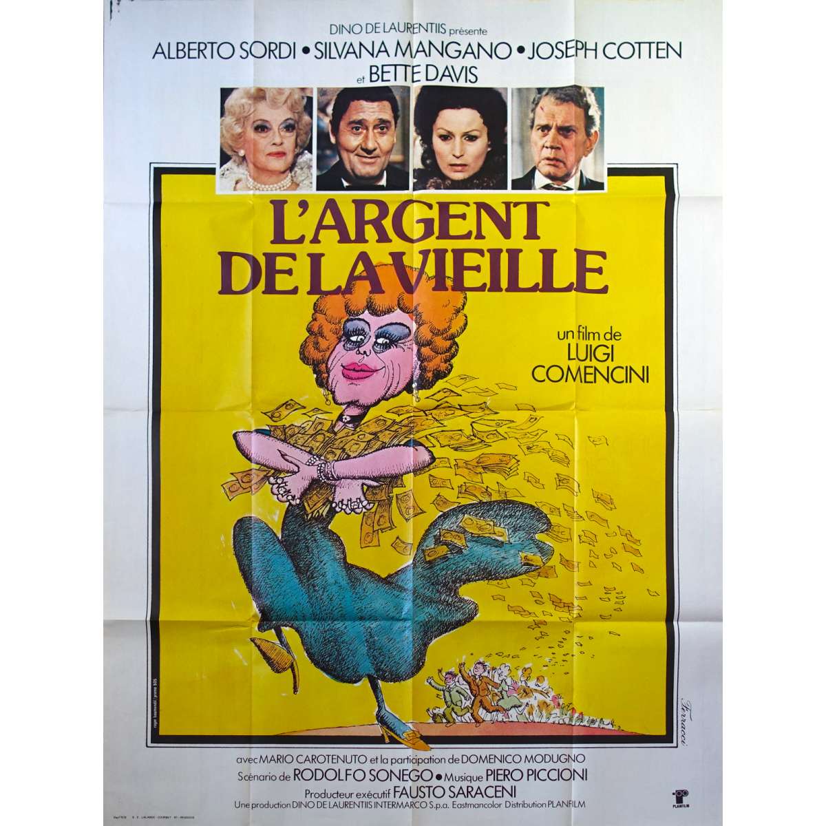 Affiche de film L'ARGENT DE LA VIEILLE de Luigi Comencini avec Alberto Sordi. 1972. Format: 120x160 cm. Très bon à Excellent état (C7). Pliée