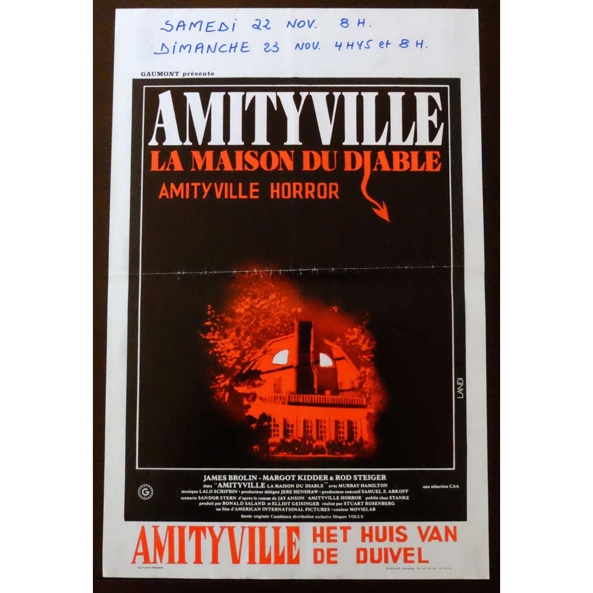 Affiche de cinéma Belge Originale de AMITYVILLE de Stuart Rosenberg avec James Brolin. Format: 35x55 cm env. Landi Etat moyen (C5), écriture, rares punaises, pli central marqué