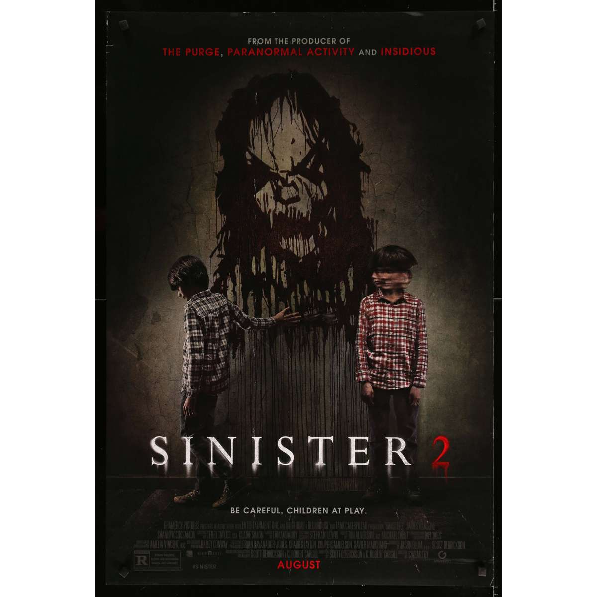 Lot de 4 affiches de cinéma originales américaines : Saw, Cry Wolf, Sinister 2, Stay Alive - De Etat Passable (C4) à Très bon état (C6), les affiches peuvent présenter des défauts d'usure et/ou déchirures et/ou plis (voir photos).