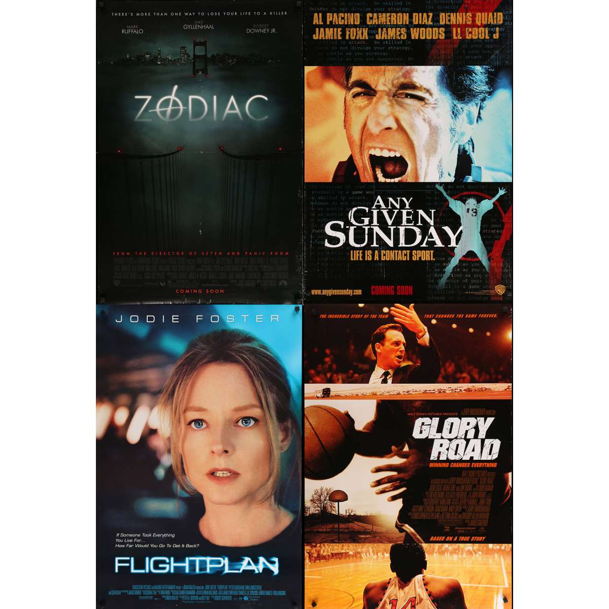 Lot de 4 affiches de cinéma originales américaines : L'enfer du dimanche, Flight Plan, Zodiac, Les Chemins du triomphe - De Etat correct (C5) à Excellent état (C8), les affiches peuvent présenter des défauts d'usure et/ou déchirures et/ou plis (voir photos).