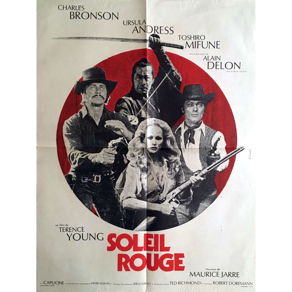 Affiche de cinéma Française de SOLEIL ROUGE de Terence Young avec Alain Delon. 1971 - Format: 60x80 cm env. Très bon état (C6), agrafes, quelques tâches