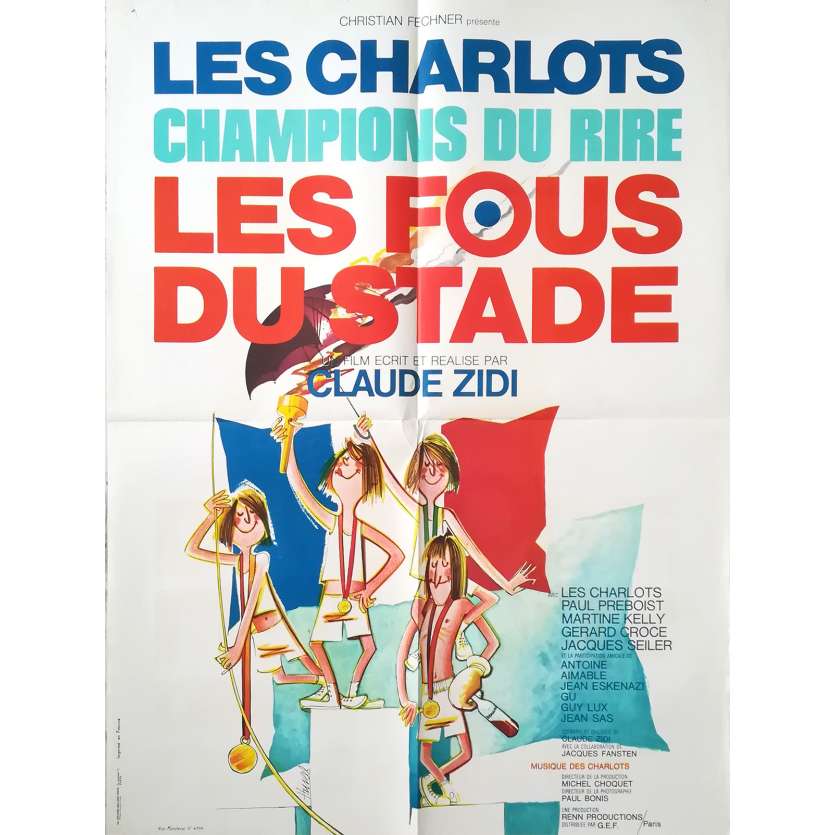 Affiche de cinéma Française de LES CHARLOTS LES FOUS DU STADE (STADIUM NUTS) de Claude Zidi avec Gérard Rinaldi. 1972 - Format: 60x80 cm. environ - Très bon à Excellent état (C7) punaises, déchirures, petite perte de matière