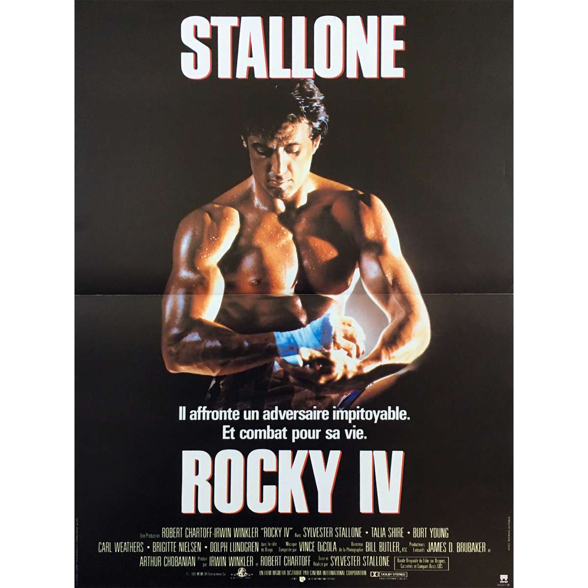 Affiche de cinéma Française de ROCKY 4 (ROCKY IV) de Sylvester Stallone avec Sylvester Stallone, Dolph Lundgren. 1985 - Format: 40x60 cm. environ - Très bon à Excellent état (C7)