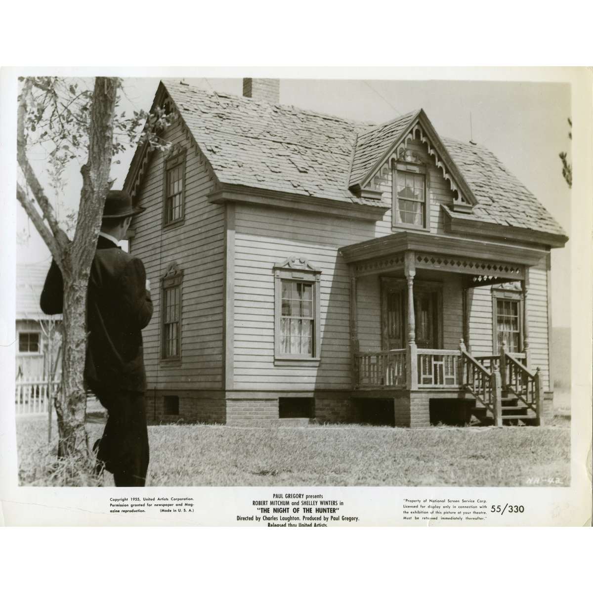 Rare Photo argentique Américaine de LA NUIT DU CHASSEUR (THE NIGHT OF THE HUNTER) de Charles Laughton avec Robert Mitchum. 1955 - Format: 20x25 cm. environ. N08 - Très bon état (C6) Déchirures