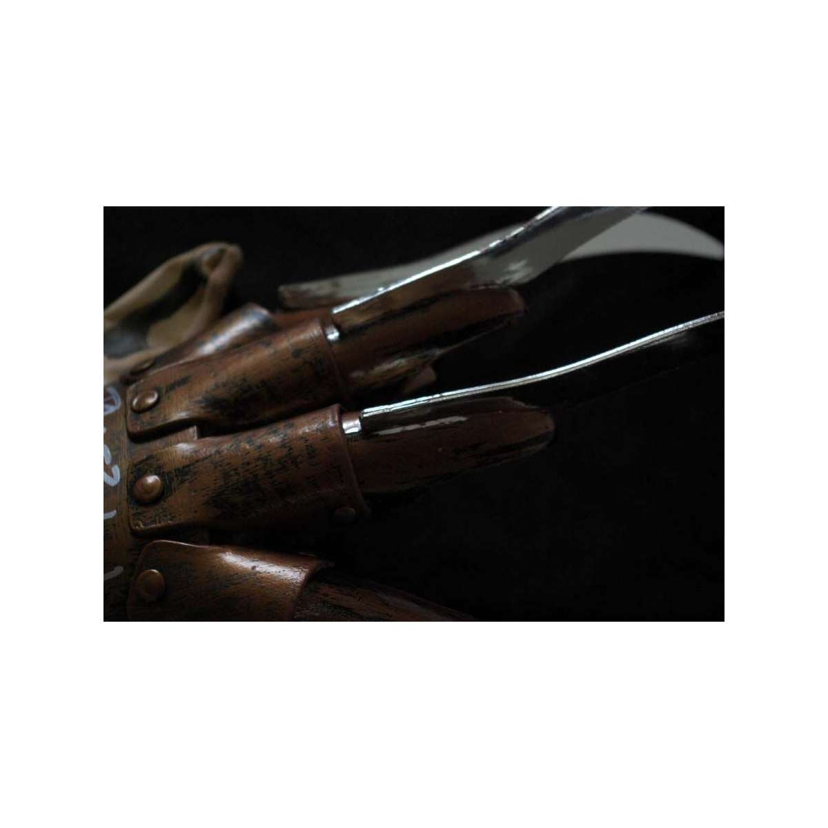 IMPORTANT : Ceci est une REPLIQUE du fameux gant de Freddy Kruger, réplique sous licence New Line Cinema faite à partir des moules originaux. La taille est unique mais la matière est élastique et convient quasiment à toutes les mains. Les lames sont en plastique et ne coupent pas ! Notez que ce gant a été PERSONNELLEMENT SIGNE par l'acteur (C'est la première fois que Robert Englund participe à une séance de dédicaces privées). La réplique est livrée avec une photo ainsi qu'un certificat d'authenticité.