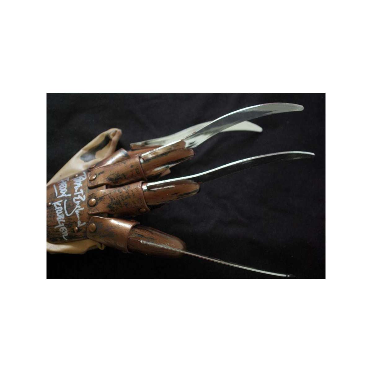 Réplique des griffes de Freddy Krueger dans les Griffes de la nuit de Wes Craven. SIgné par Robert Englund / Freddy Krueger en personne ! Très rare ! Excellent état (C8)/ Livré avec photo et COA.