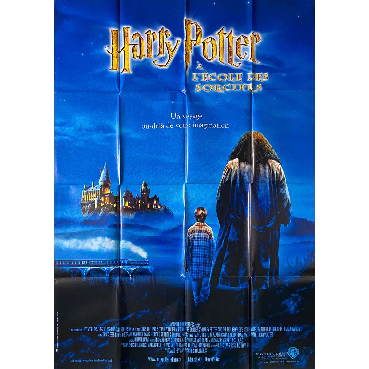 Affiche de cinéma française de HARRY POTTER (HARRY POTTER - 2001) - Chris Colombus, Daniel Radcliffe - Format: 120x160 cm. environ. Prev. - Très bon état (C6) petites déchirures sur plis