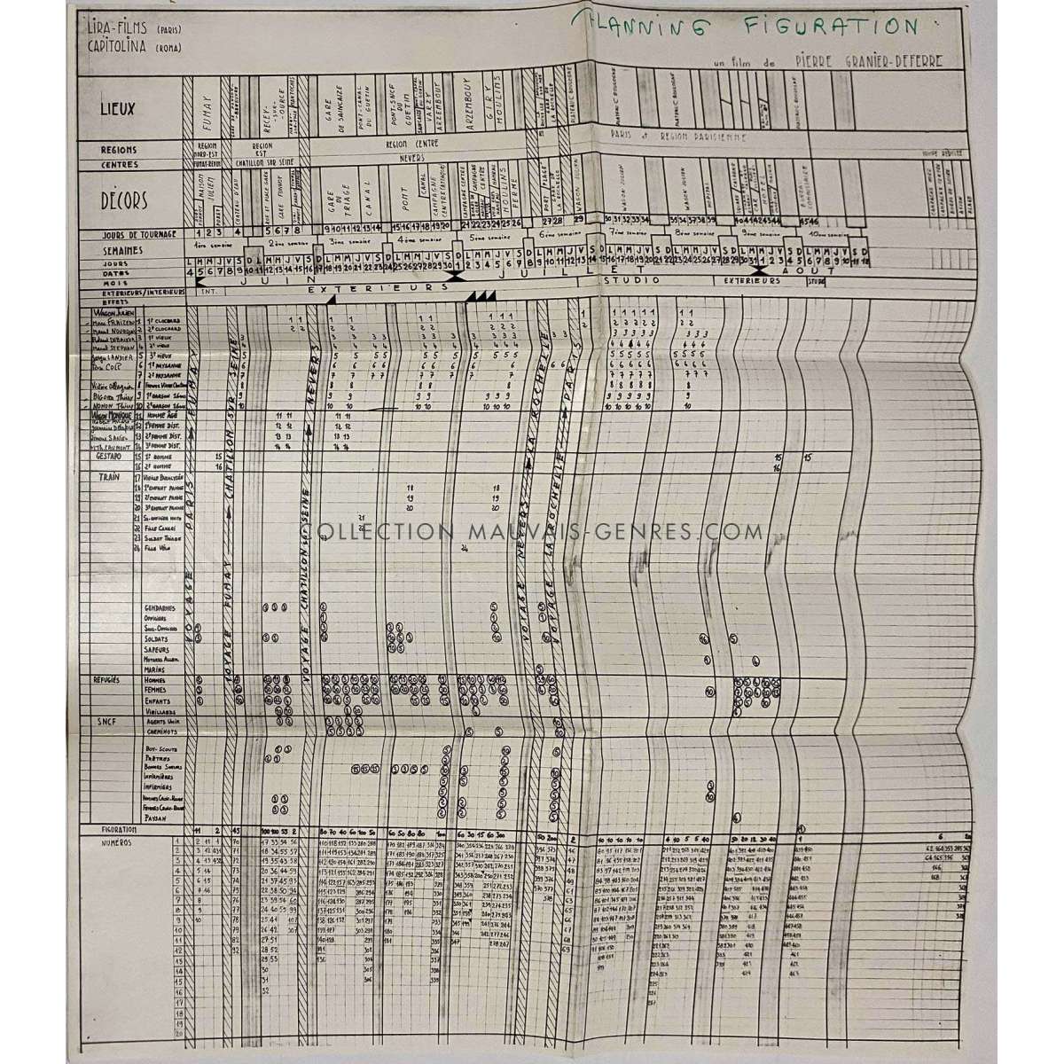 Scénario de LE TRAIN (LE TRAIN - 1973 - Pierre Granier-Deferre, Jean-Louis Trintignant) 160p - Format: 21x30 cm. environ. - Très Bon état (C6). Rare exemplaire ayant appartenu à la responsable de production du film O. Darrigol (La Veuve Coudert…). Le lot comprend le scénario utilisé pour le tournage et le plan de tournage.