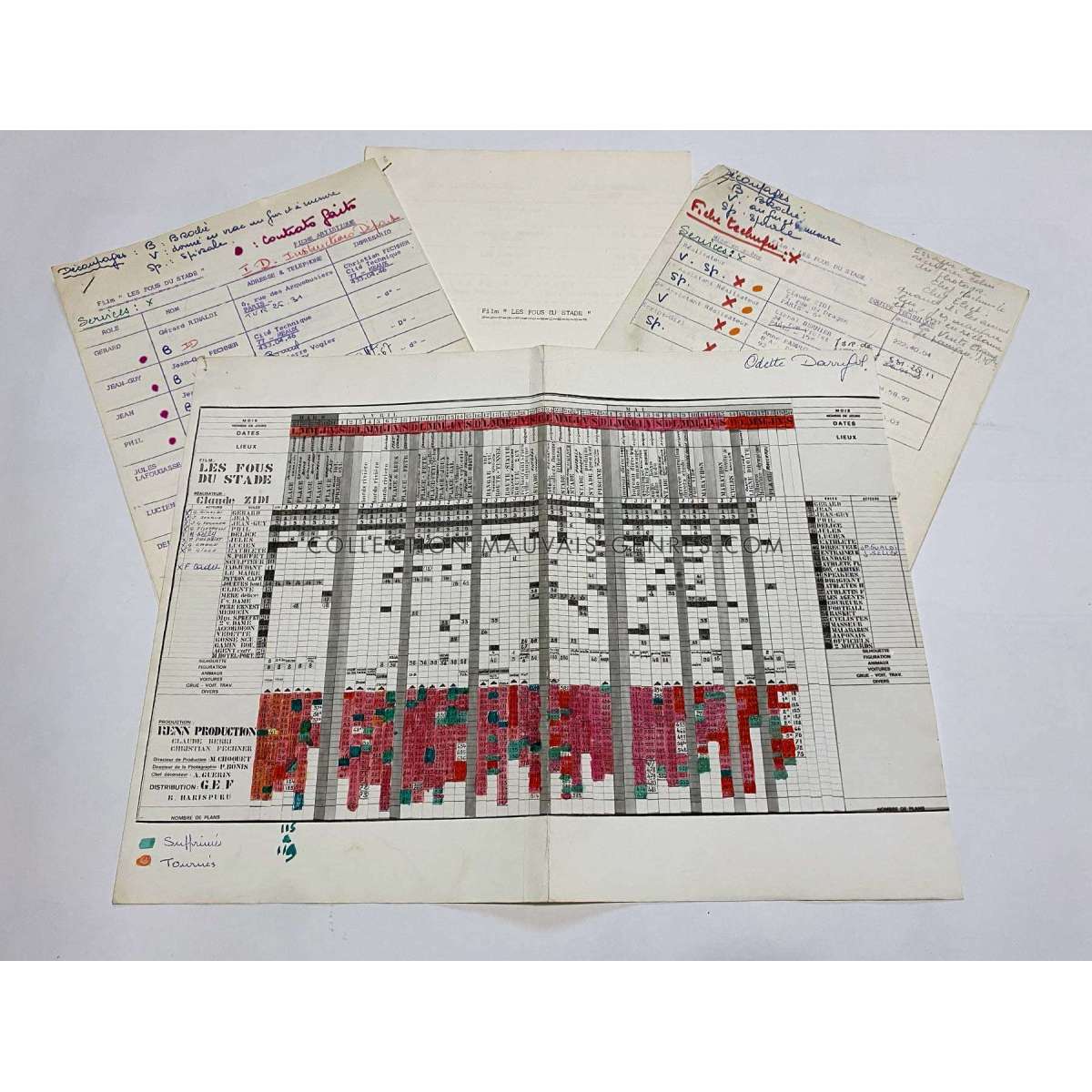 Scénario de LES FOUS DU STADE (STADIUM NUTS - 1972 - Claude Zidi, Gérard Rinaldi) - Format: 21x30 cm. environ. - Etat correct (C5) Rare exemplaire ayant appartenu à la responsable de production du film O. Darrigol (La Veuve Coudert…). Le lot comprend le scénario (180p.) utilisé pour le tournage et le plan de tournage.