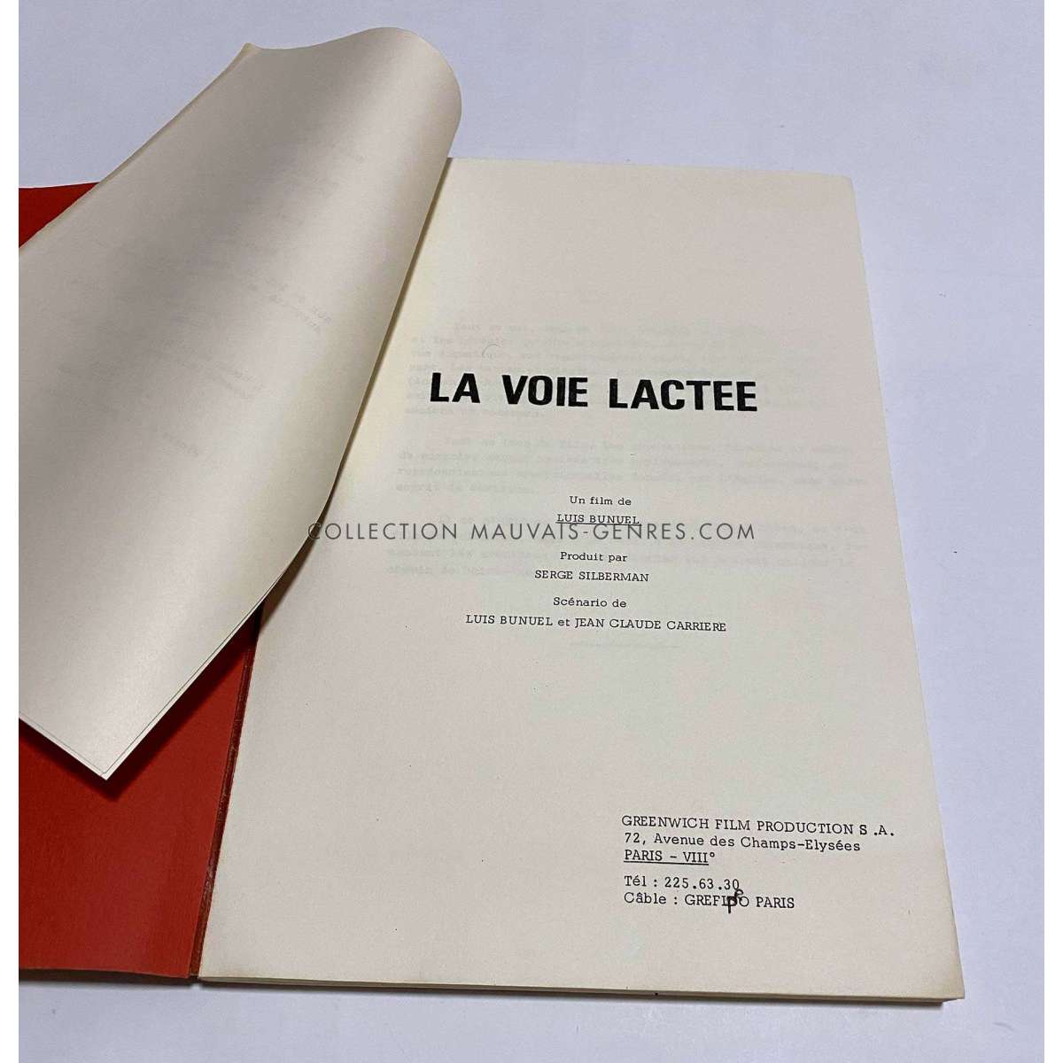 Scénario en français de LA VOIE LACTEE (THE MILKY WAY - 1969 - Luis Buñuel, Paul Frankeur) 114p - Format: 21x30 cm. environ. - Très bon état (C6) Rare exemplaire ayant appartenu à la responsable de production du film O. Darrigol (La Veuve Coudert…). Le lot comprend le scénario utilisé pour le tournage et divers documents de production.