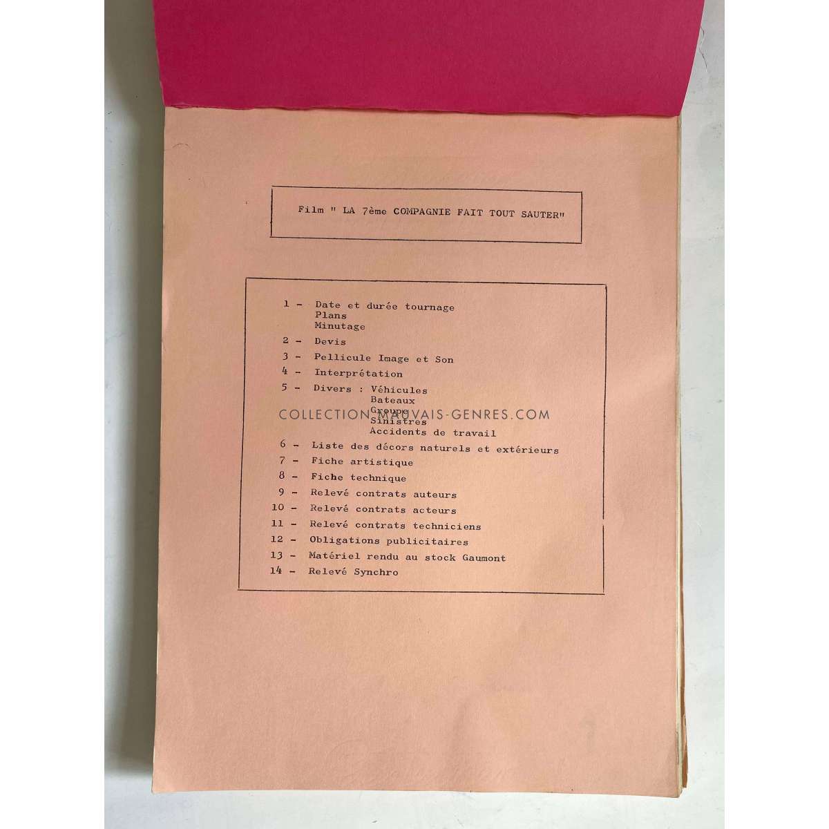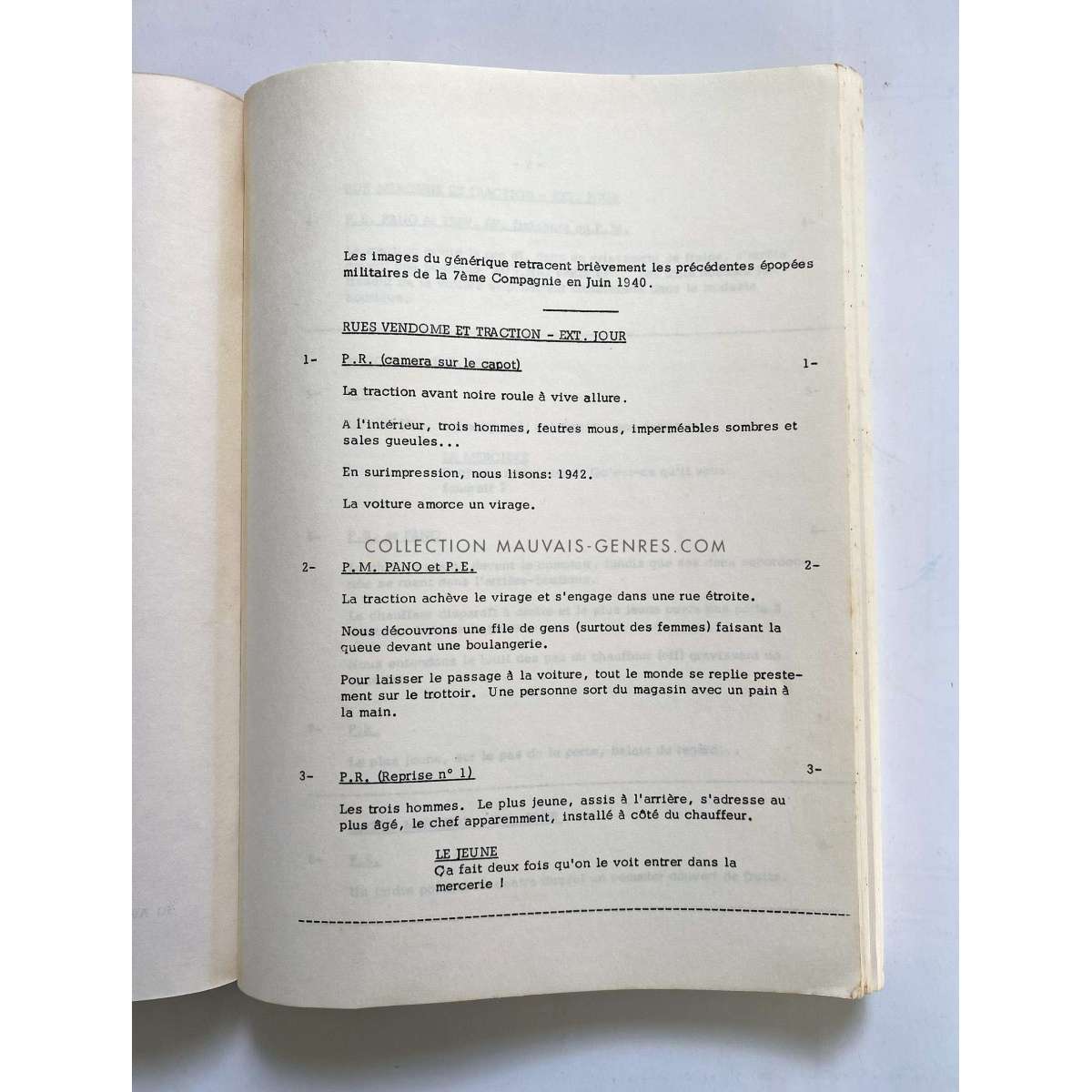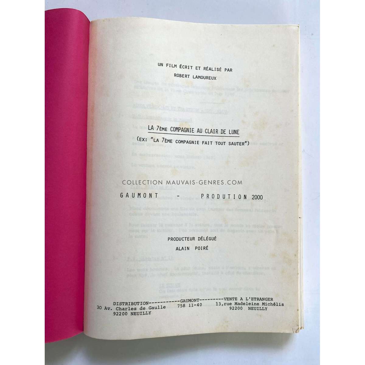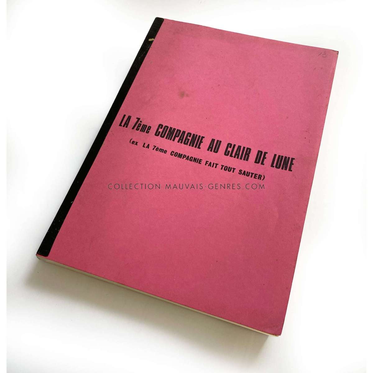 Scénario original et bible de production de LA 7EME COMPAGNIE AU CLAIR DE LUNE (THE SEVENTH COMPANY OUTDOOR - 1977 - Robert Lamoureux, Jean Lefebvre) 137p - Format: 21x30 cm. environ. - Très bon état (C6) Rare scénario et bible de production ayant appartenu à la responsable de production du film O. Darrigol (La Veuve Coudert…).