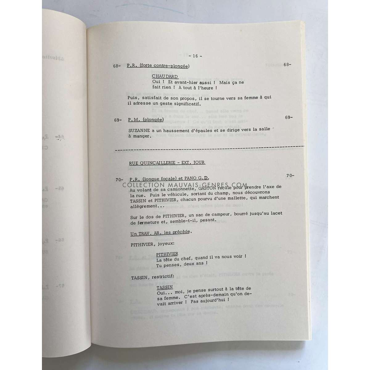 Scénario original de LA 7EME COMPAGNIE AU CLAIR DE LUNE (THE SEVENTH COMPANY OUTDOOR - 1977 - Robert Lamoureux, Jean Lefebvre) 137p - Format: 21x30 cm. environ. - Très bon état (C6) Rare scénario ayant appartenu à la responsable de production du film O. Darrigol (La Veuve Coudert…).