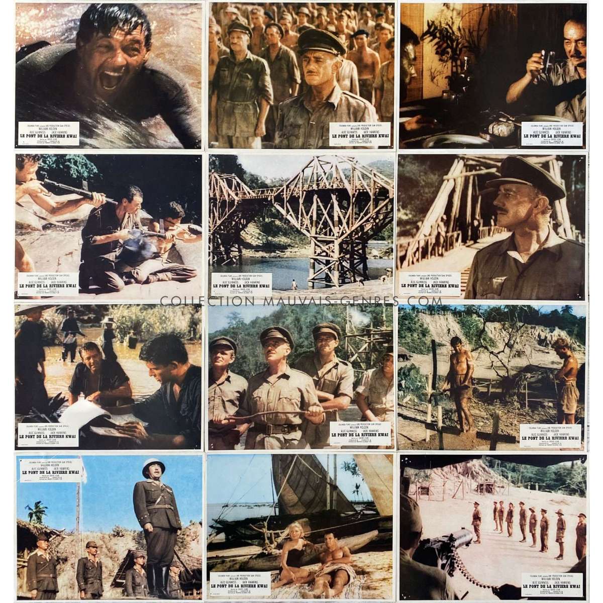 Photos d'exploitation françaises de LE PONT DE LA RIVIERE KWAI x12 (THE BRIDGE ON THE RIVER KWAI - 1957/R1970) - Format: 24x30 cm. environ. - Très bon état (C6) Punaises, Plis