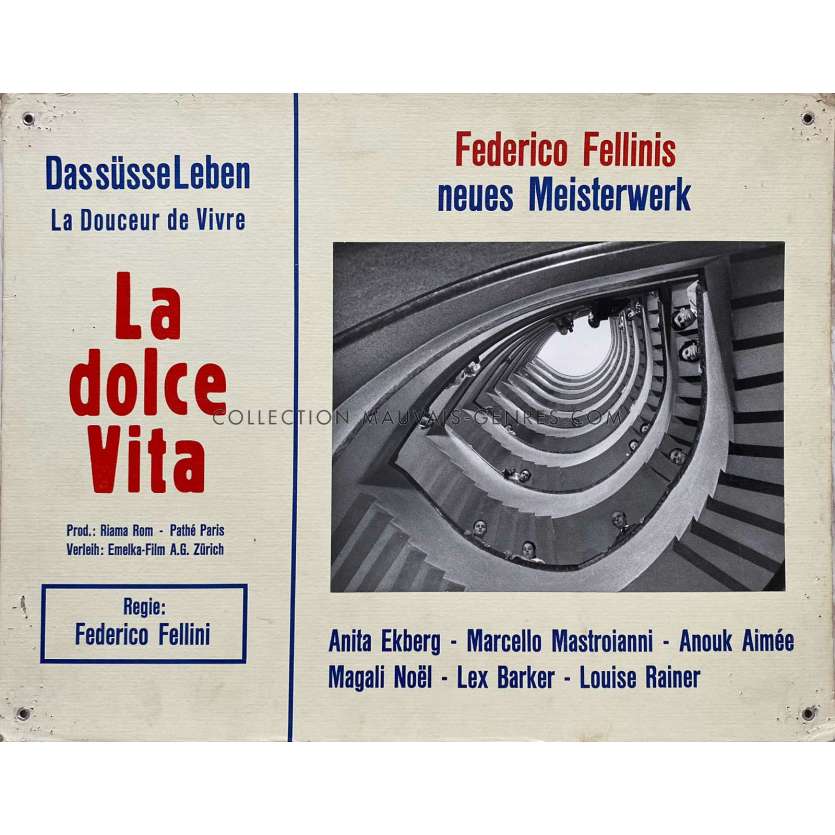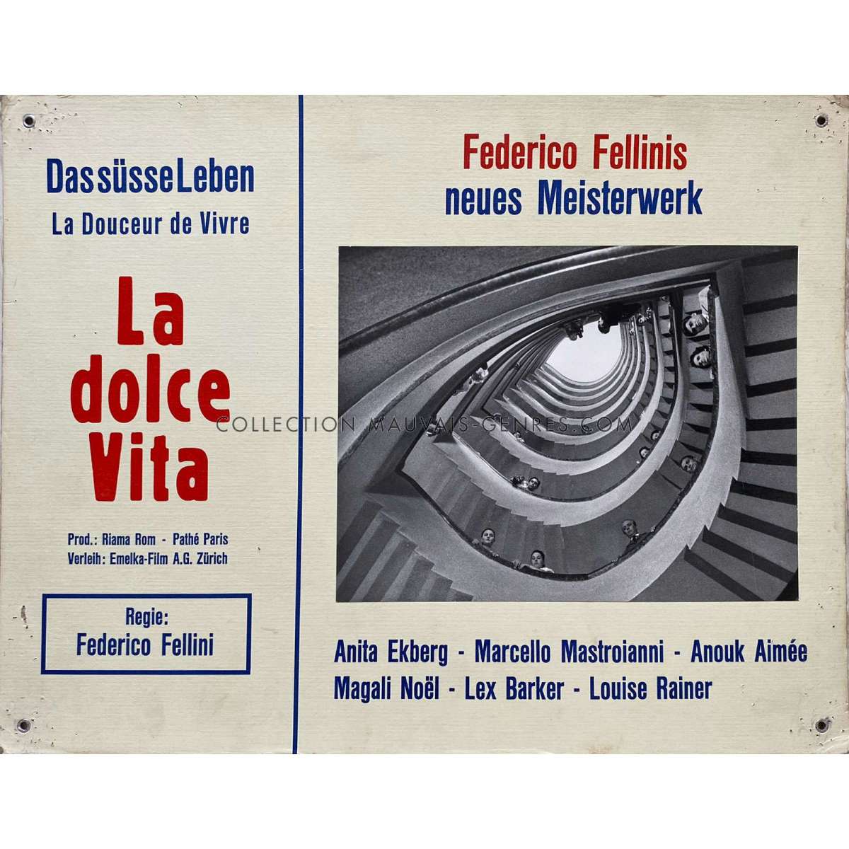 Photo d'exploitation prestige (cartonnée) de LA DOUCEUR DE VIVRE (LA DOLCE VITA - 1960 - Suisse) N10 - Format: 35x44 cm. environ. - Etat correct (C5) Punaises multiples, Cartonnée (d'origine), superbe.