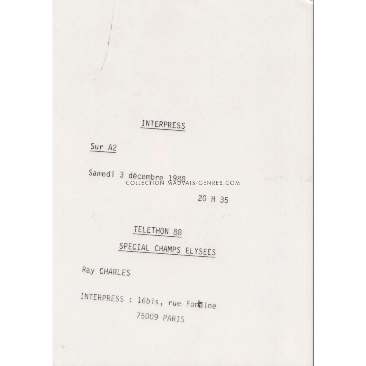 | Format approx. en cm. | FR - 13x18 - Photo de presse |